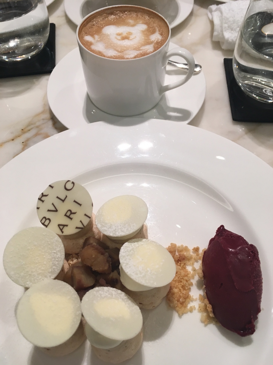 デパート内のカフェですがケーキとカプチーノでホテルのラウンジに匹敵するくらいのお値段、さすがブルガリです。イタリア風モンブランとティラミスをいただきました。ガヤガヤした感じでゆったり落ち着く雰囲気ではありませんが、2時間座っていても快適な椅子でした。阪急ですがSポイントカードは使えません。