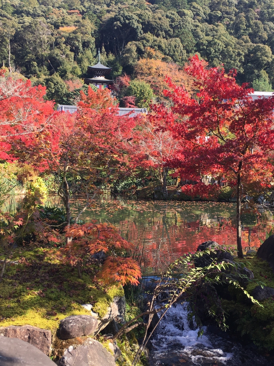 紅葉はもちろん、黄色い落ち葉とのコントラストや川面に映った逆さの景色などいろいろ目の保養となりました。当日は晴天で暖かく京阪三条駅から歩いて訪問。距離はありますが、途中で南禅寺の紅葉も見学して良い運動になりました。- 旅行時期