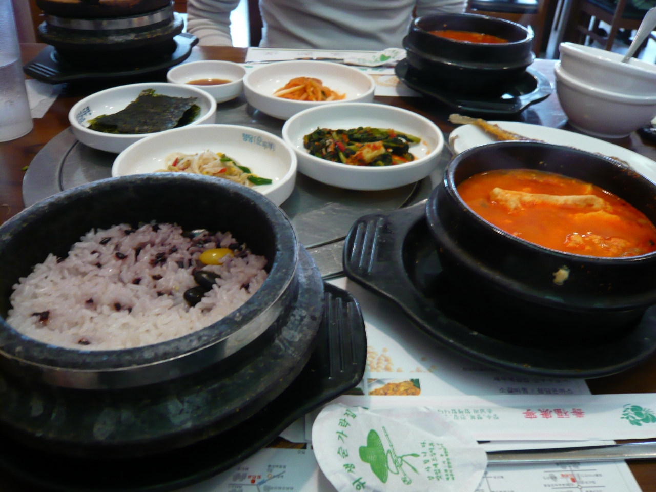 ふわふわ豆腐とピリ辛のチゲでご飯が進みます。