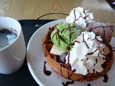 ワッフル半分くらいで苦しくなってきて、結局は残しました。