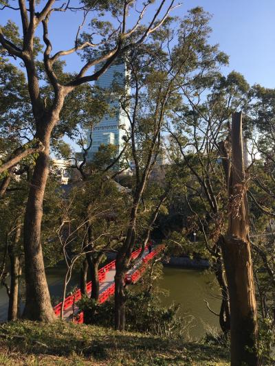 河底池にかかる赤い橋を渡り、山と言っても標高26メートルなので坂道を登る感じで行けます。
