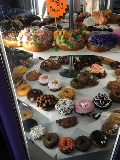ポートランドの有名なドーナツショップ。外まで行列はしてませんが中に入ると並んでいました。日本では見ないカラフルなドーナツのオンパレード。