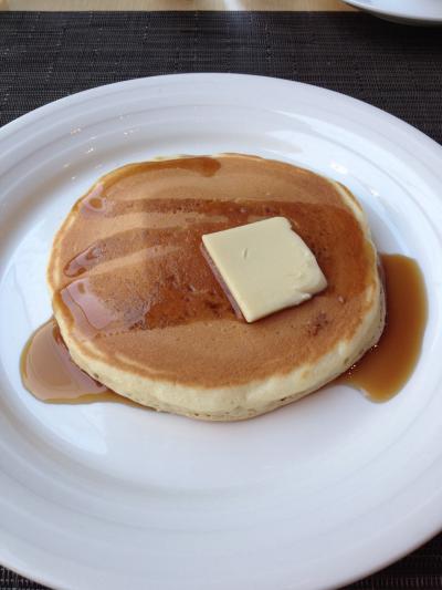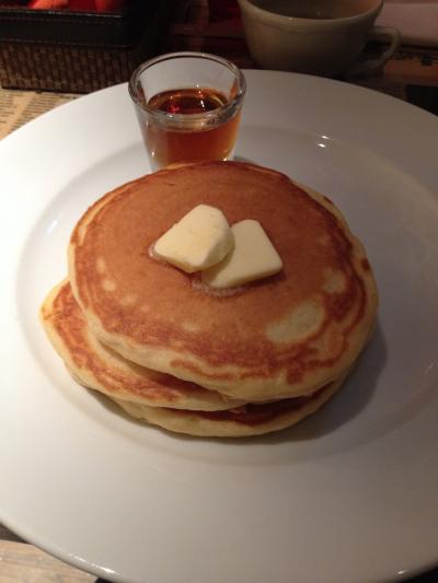 発酵バターとメープルシロップのパンケーキは見た目シンプルでちょっと寂しい感じですが、フワフワで美味しかったです。