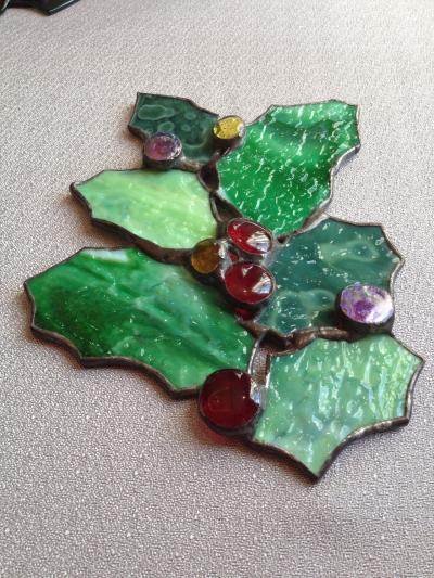 テーブルにはそれぞれステンドグラスが置かれ、クリスマスが近いため柊のステンドグラスもありました。