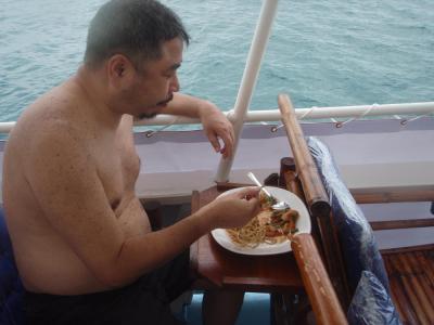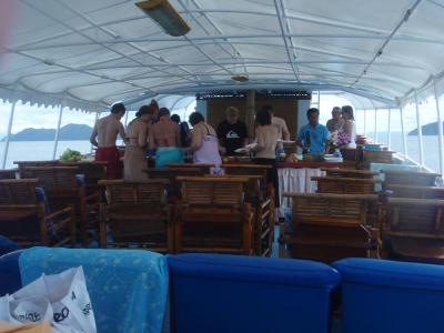結構大きなアイランドホッピングで乗った観光船。ダイビングも出来るよう...