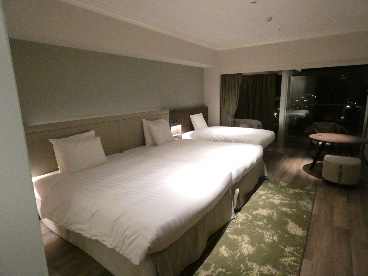 夫婦と子供二人で利用。エキストラベッドが2個追加でしたが、部屋は十分広いです。大浴場が無いなので、部屋風呂となりますが!洗い場も浴槽も広くて快適。ハワイのホテルを思い出す、リゾート感満載の部屋でした。