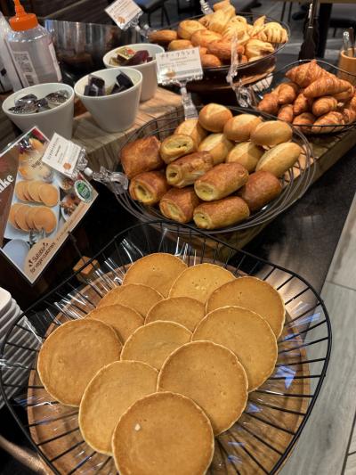 朝食のビュッフェは、京都らしいおばんざいや、おしゃれな料理が多く、どれも美味しい。天ぷらや生麩、出汁巻き、唐揚げなどの中華もあります。しば漬けのポテトサラダはオススメ!特筆すべきは、米粉パンの出汁巻き卵サンドの柴漬けタルタルソース!面白いし美味しい!