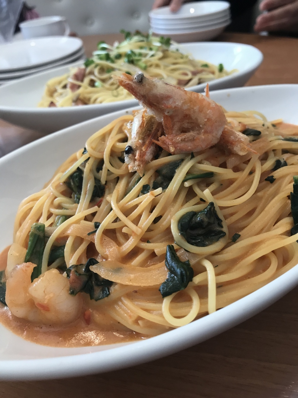寝屋川の の1階にあります。どのメニューもボリュームがたっぷりで、量も追加できます。オマールエビのビスク風スパゲティは美味しいです。ベーコンとしめじのスパゲティは味が薄くてあまり美味しくないです。ドリンク飲み放題をつけるとお得が店です。