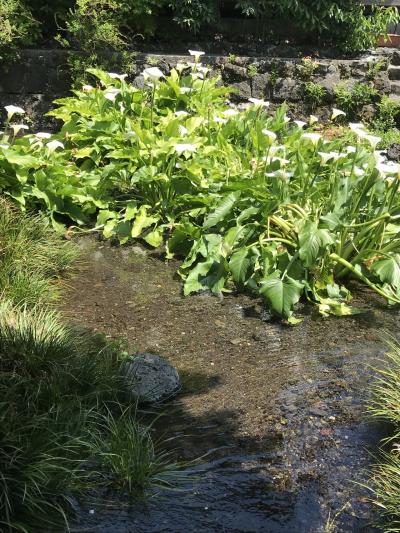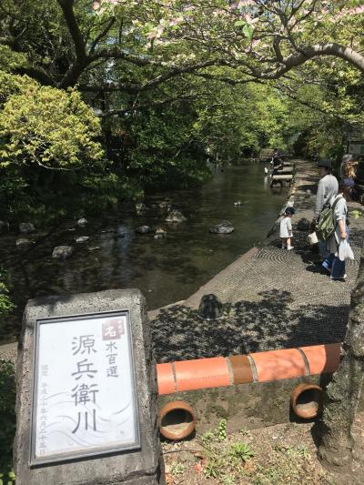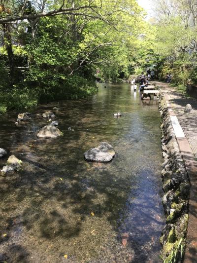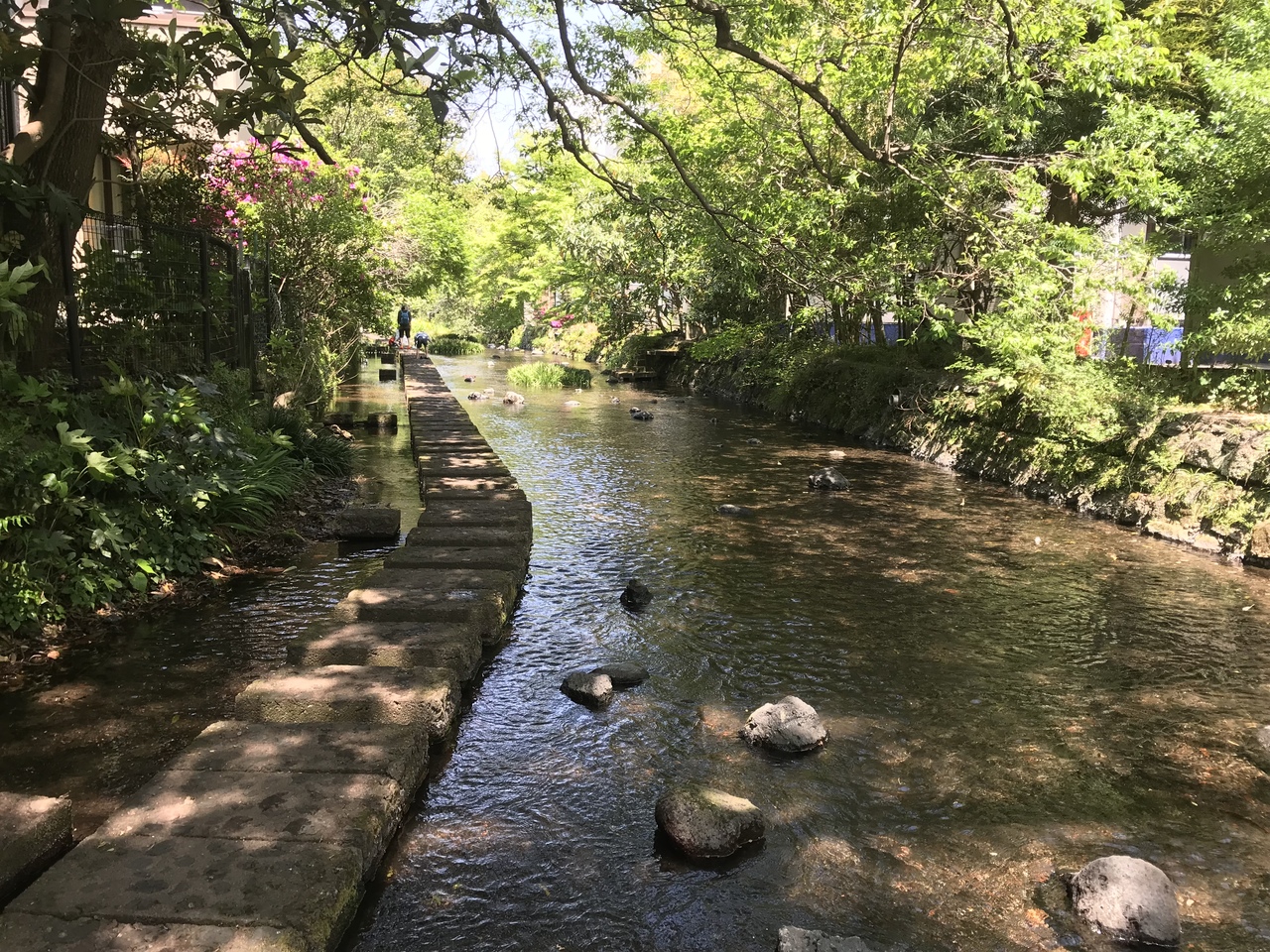 楽寿園の南に流れる源兵衞川は水が透明でとても綺麗な川です。この川沿いは散策道があり、更に川の中に飛び石式の道があります。きれいな花を見たり水芭蕉などを見ながら川の中を歩くのはとても気持ちがいいです。行ってみる価値ありの場所です。
