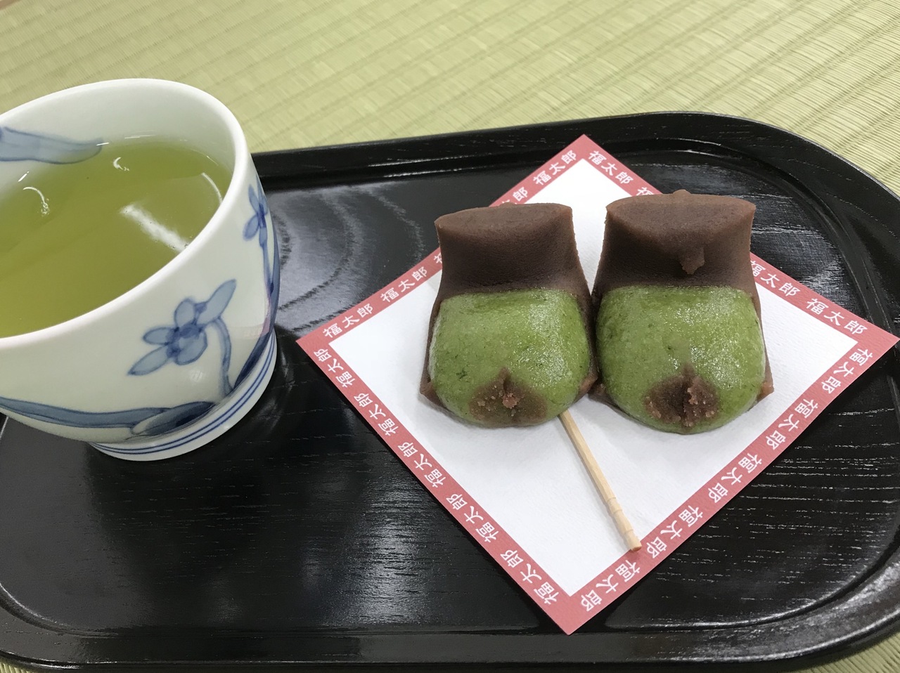 三島大社の中にある和菓子屋です。草団子が有名で二個200円です。俵型の団子に変わった形であんこが漬けられています。店内で食べるとお茶がついてきます。甘くて柔らかい団子は美味しくてもちろんお土産ようもあります。