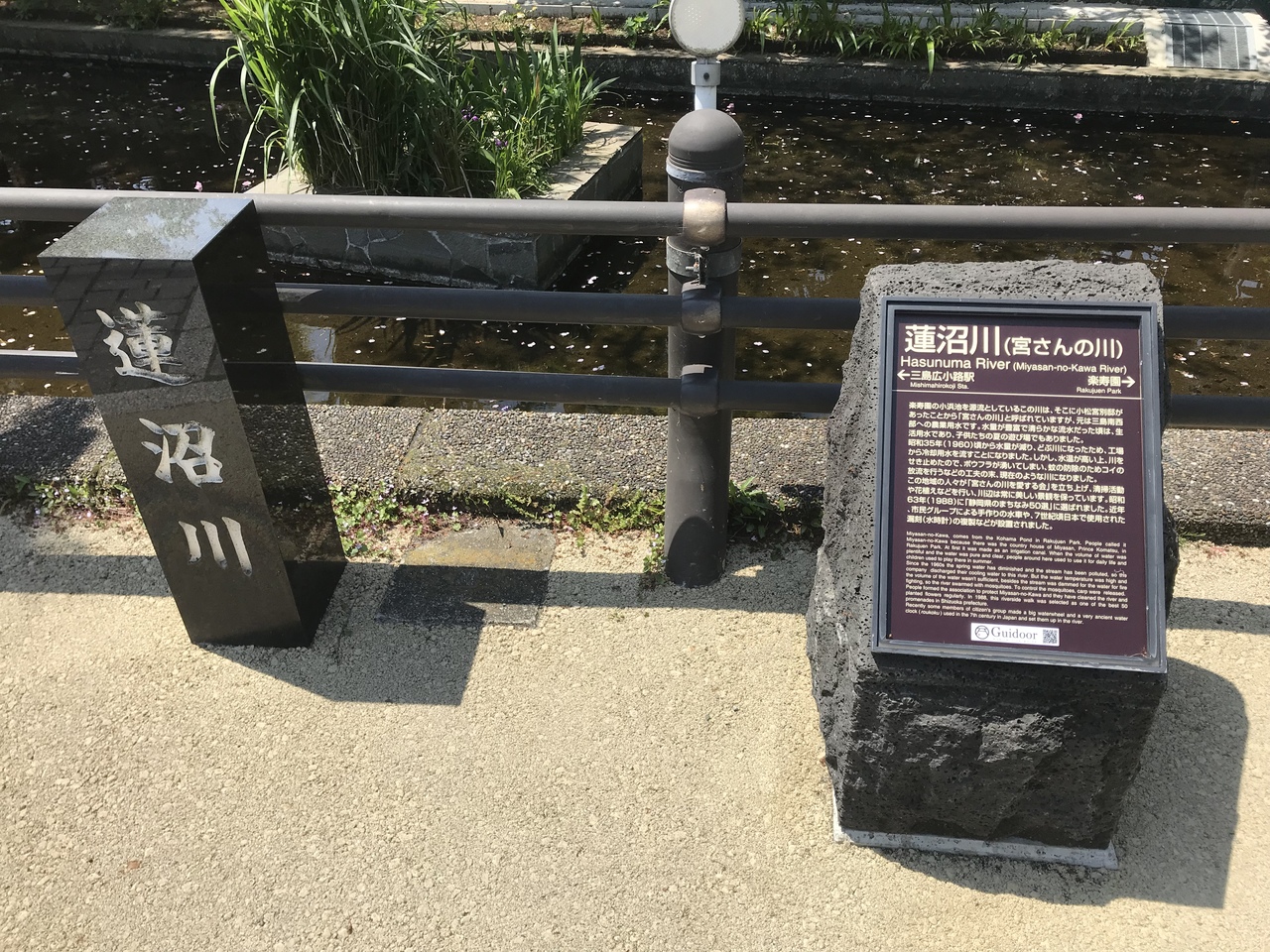 JR三島駅の南で、楽寿園の更に南に流れる源兵衞川は水が透明でとても綺麗な川です。この川のそばには散策するのにもってこいの道があり、地元の人がよく遊びに来ています。川は浅いので子供も入ることができます。名水百選に選ばれています。