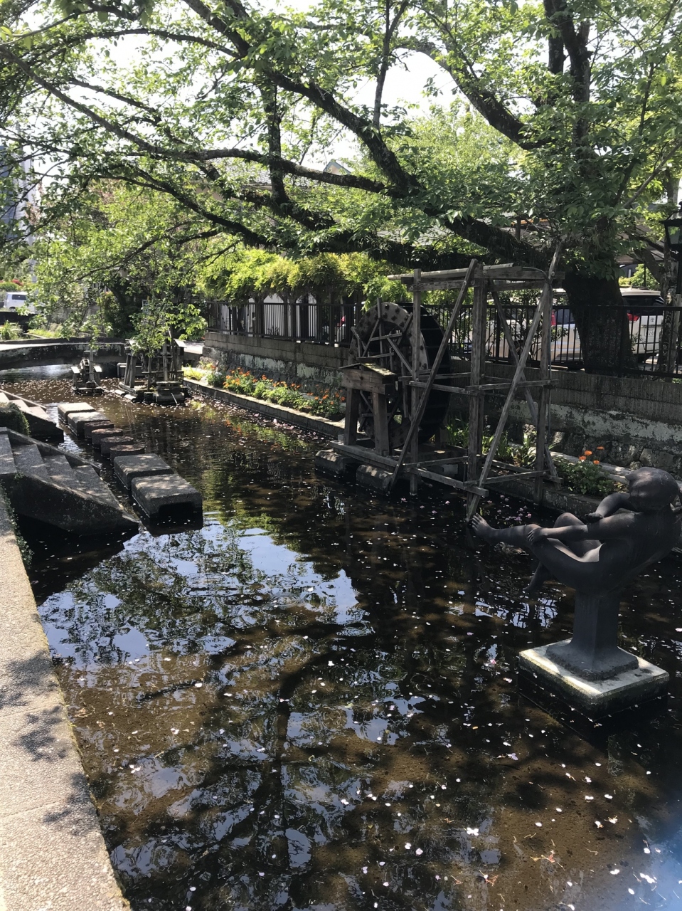 源兵衞川の西側に平行するように流れている川です。大きな川ではなく、川の水も少なく浅い川です。川には水車などのオブジェがあり、見ていると昔懐かしい感じがします。是非立ち寄って見てみるのも良いのではないでしょうか。