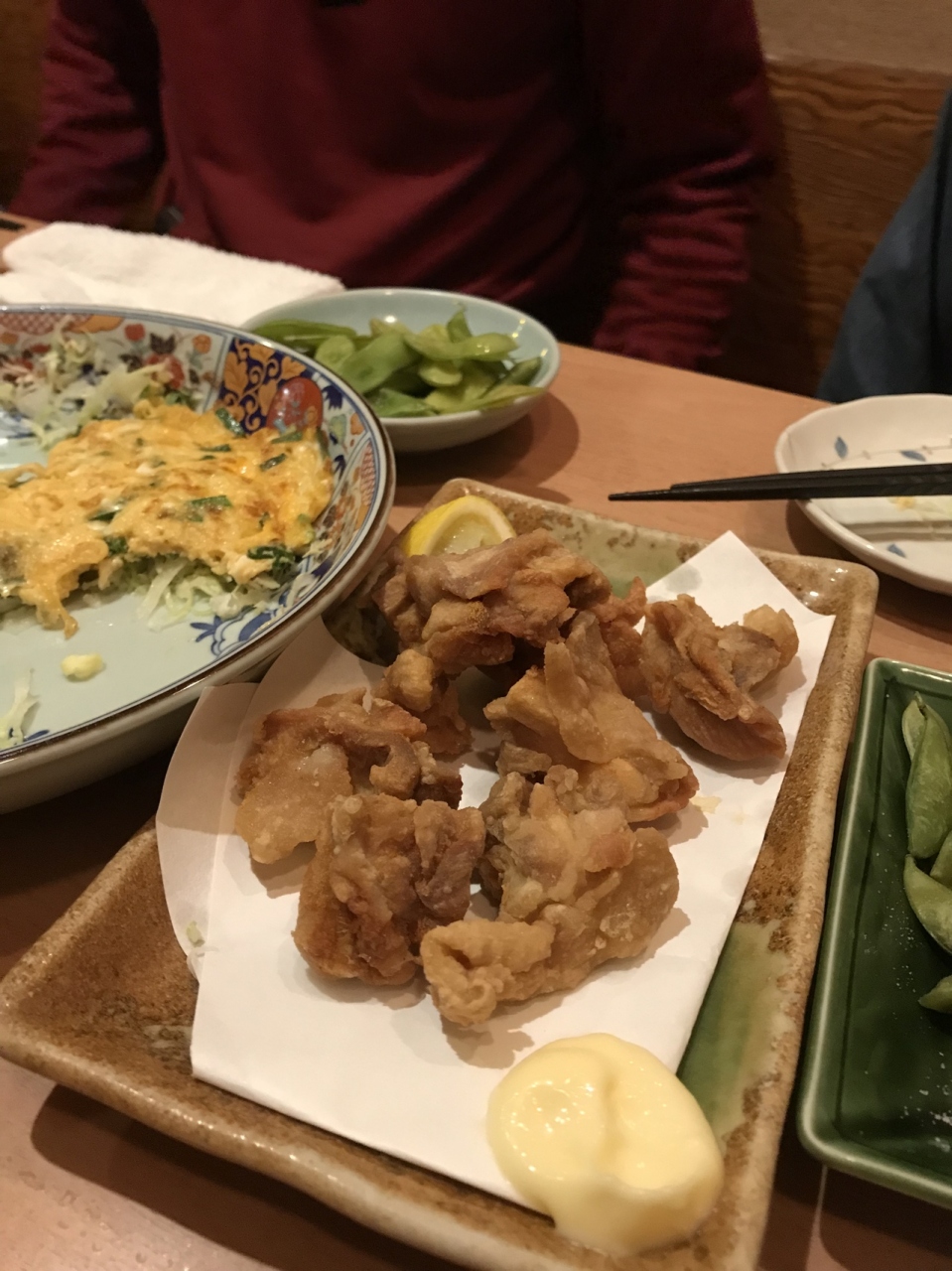寝屋川市にある天ぷら屋です。ここはセットを頼むと明太子が食べ放題です。とり天セットを頼むと大きなとり天が3つぐらい、野菜の天ぷらとごはんと味噌汁が付きます。天つゆで食べます。明太子が食べ放題ですが、ご飯は食べ放題ではないので、最初にご飯は大盛りを注文しとくのがいいでしょう。