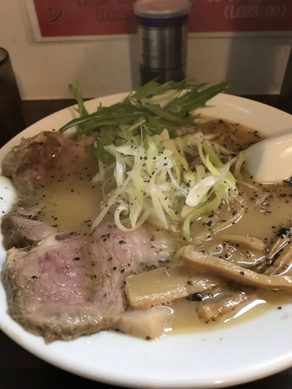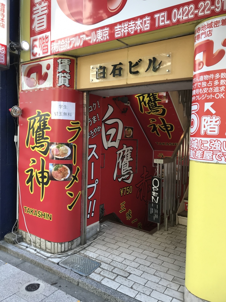 吉祥寺のヨドバシ近くにあるラーメン屋です。真っ赤な作りで地下に降りていくため入りにくい店です。辛いラーメンもあるみたいですが、白醤油ラーメンを選択。チャーシューも鳥と肉が選べます。肉はローストビーフでかなりうまい!スープも見た目よりすっきりしていて、これまでにない味で美味しいです。麺はストレートの普通麺でした。なかなかいいと思いますが、通うとすぐに飽きそう。