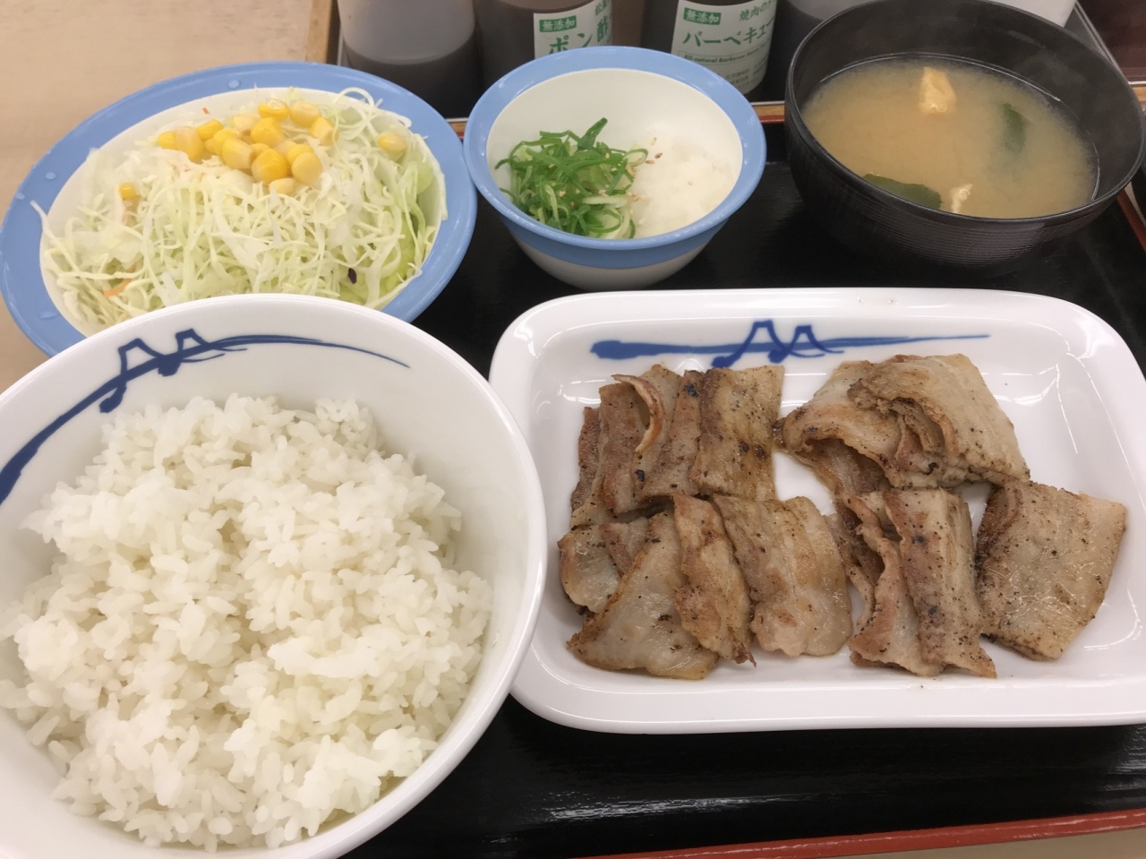 JR武蔵境駅近くの松屋です。豚バラ定食を食べましたが、出てくるまで遅いし、焼き過ぎだし、味噌汁は薄いし、接客のバイト(たぶん大学生)は気が付かないし全然だめ。味もイマイチ。松屋って久しぶりだったけど、こんなにひどかったかな?