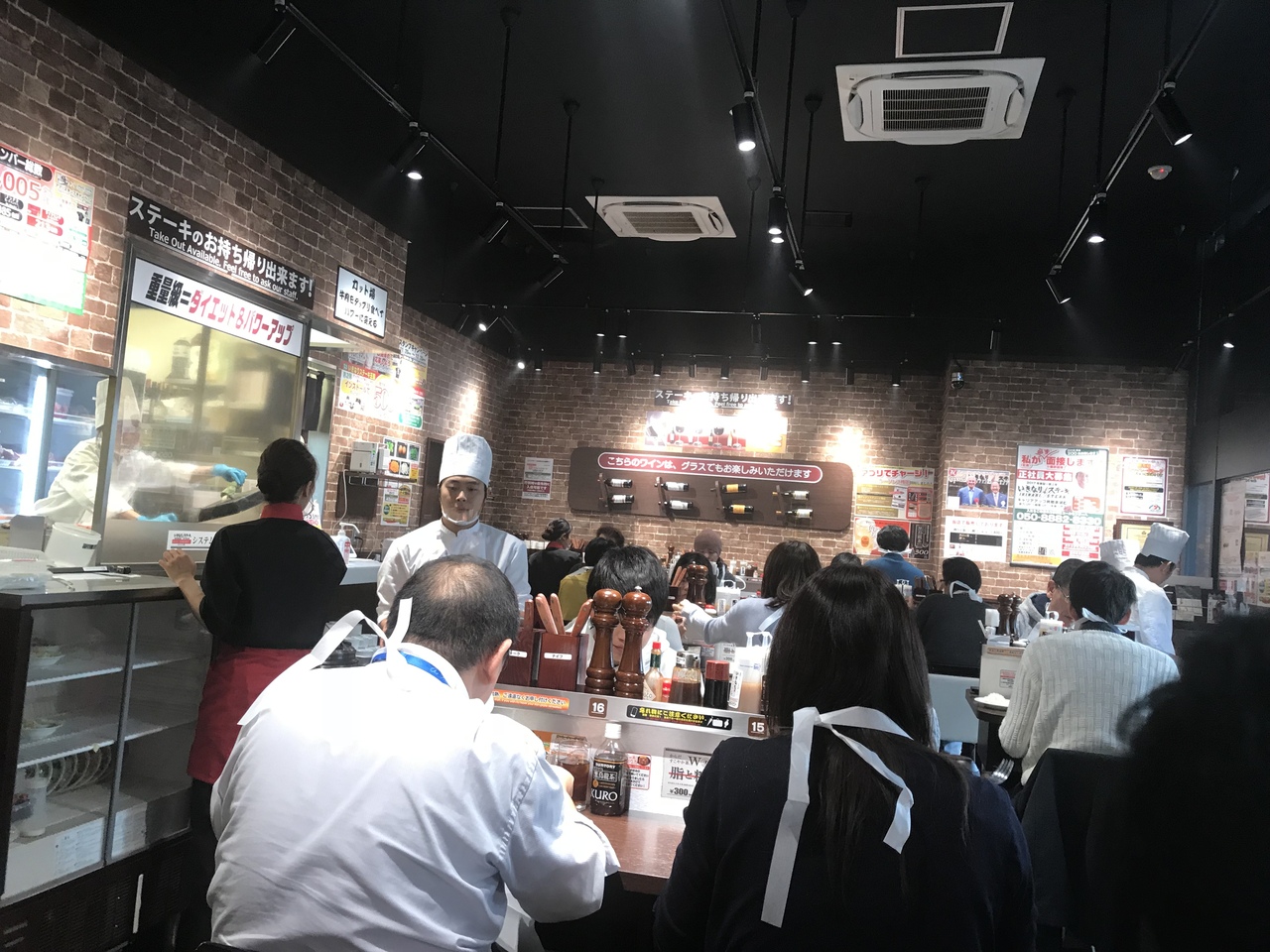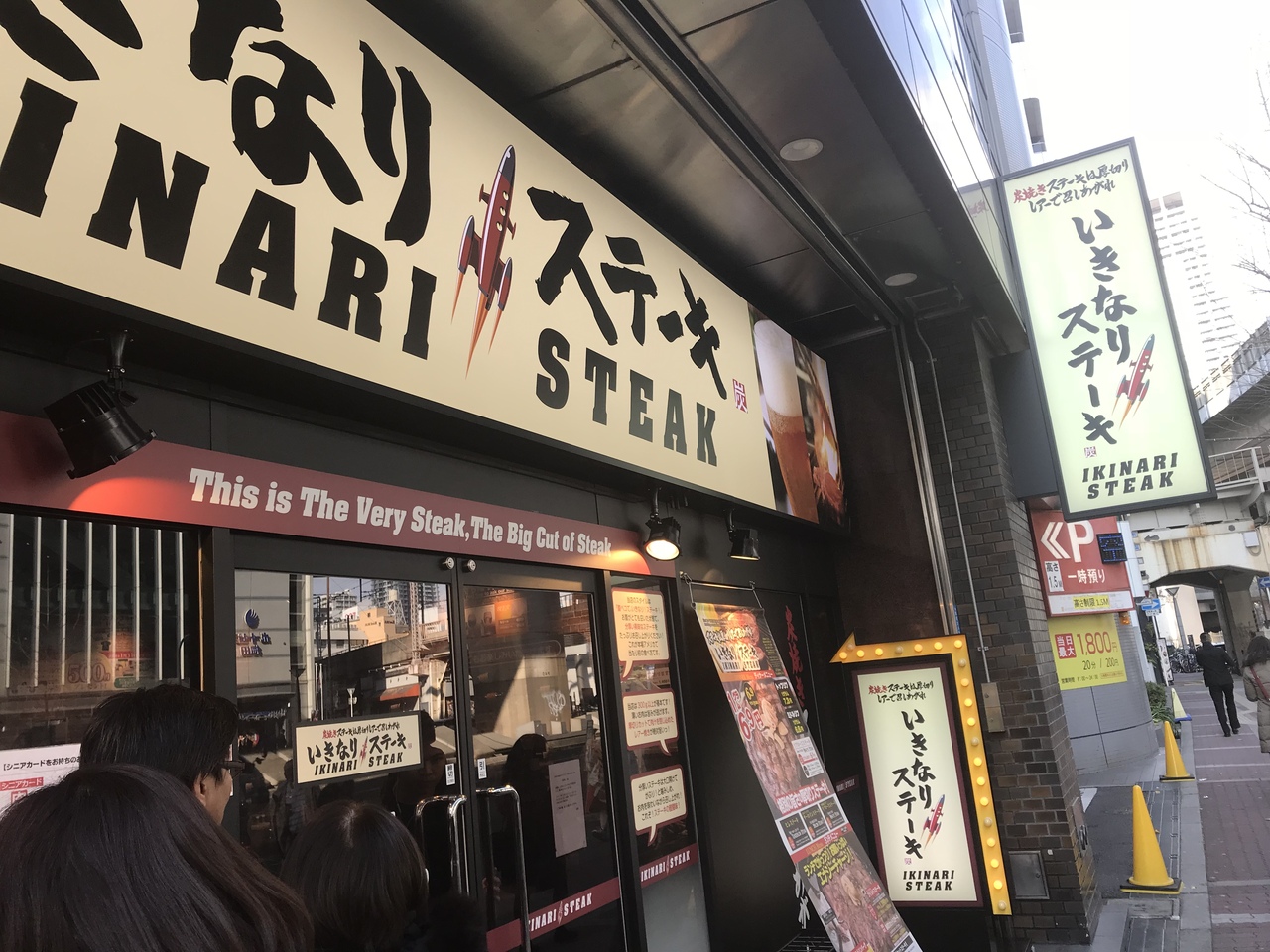 梅田にあるいきなりステーキです。立ち食いではなくちゃんと椅子があります。ランチタイムは行列ができるので早めに行くのがおススメです。ランチタイム中は量り売りをしていません。敢えてランチメニューを頼まず、リブロースの300gを注文。レアがおいしいですが、400gでも良かったかな?