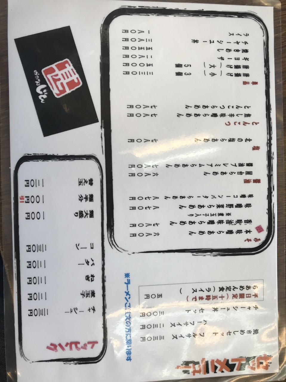 国道170号線沿いにあるラーメン屋です。普段から空いているのでイマイチかと思いながら入りました。味噌ラーメンが自慢らしく、香味味噌ラーメンはかなり美味い!コーンバターラーメンはコーンがめちゃくちゃ多いです。チャーシューは甘くなく、分厚いので珍しく、かなり美味いと思います。いつも空いているので、不思議ですが、私はここの味噌ラーメンがかなり好きです。