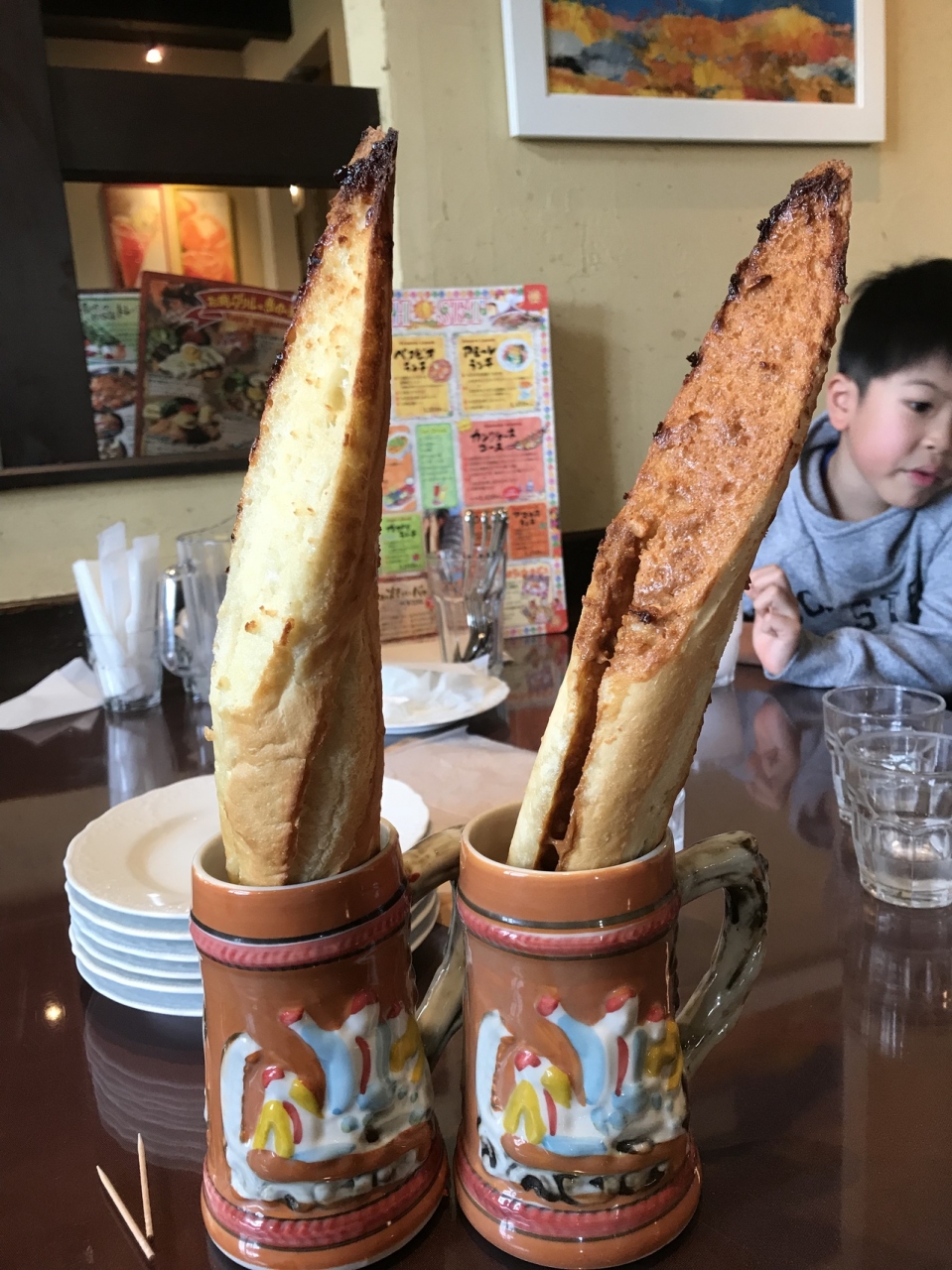 八幡にあるお手頃価格のイタリアンの店です。土日はかなり混みます。ここは料理もおいしいですが、何より『バケッ塔』と呼ばれるバケットです。料理を注文すると付いてきます。ハチミツやミルククリーム、明太子等色々な種類から選べます。これがうまい!