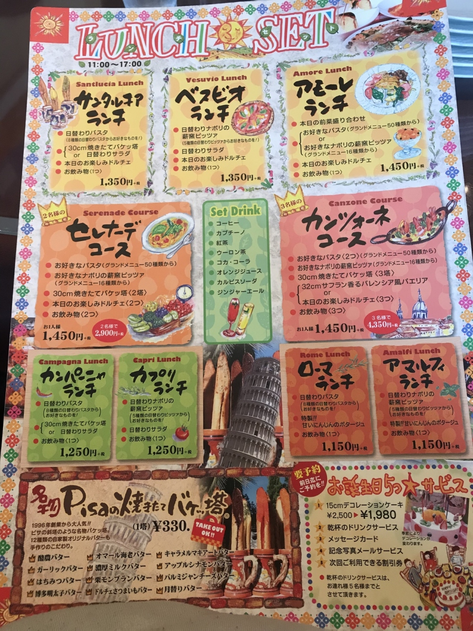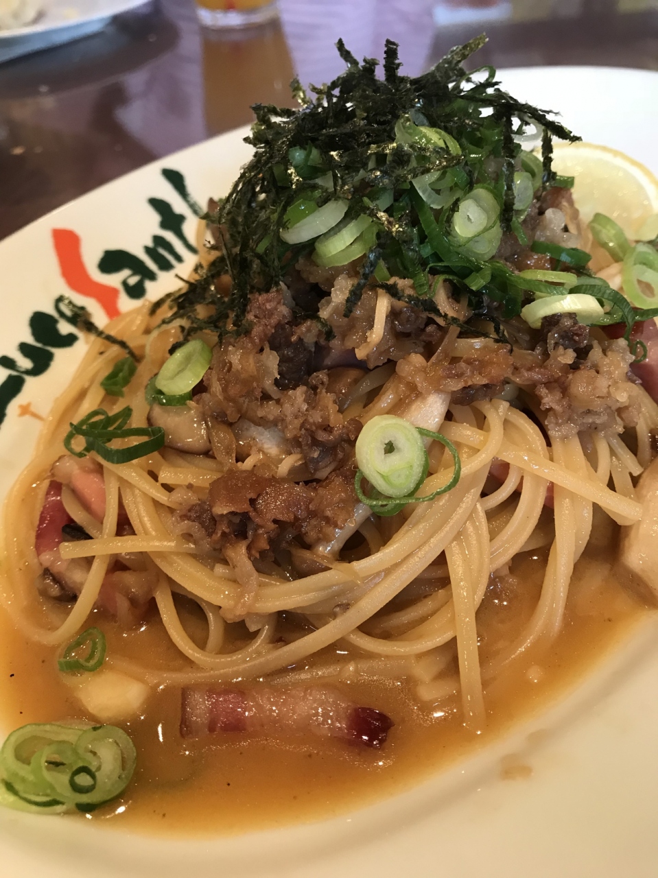 この店は行く価値ありだと思います。スパゲティも美味しく、ピザも本格的でボリュームがあります。ランチセットだと1350円で、パスタ、バケット又はサラダ、ドリンク、デザートが付きます。各種割引券もあり、近くのコストコのカードを見せるとバケットがサービスされます。ちなみにバケットは食べきれなかったら持ち帰りもできます。- 旅行時期