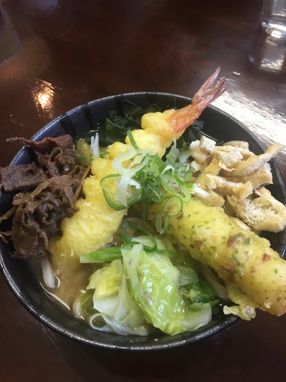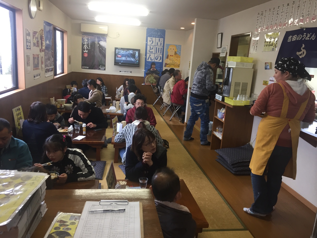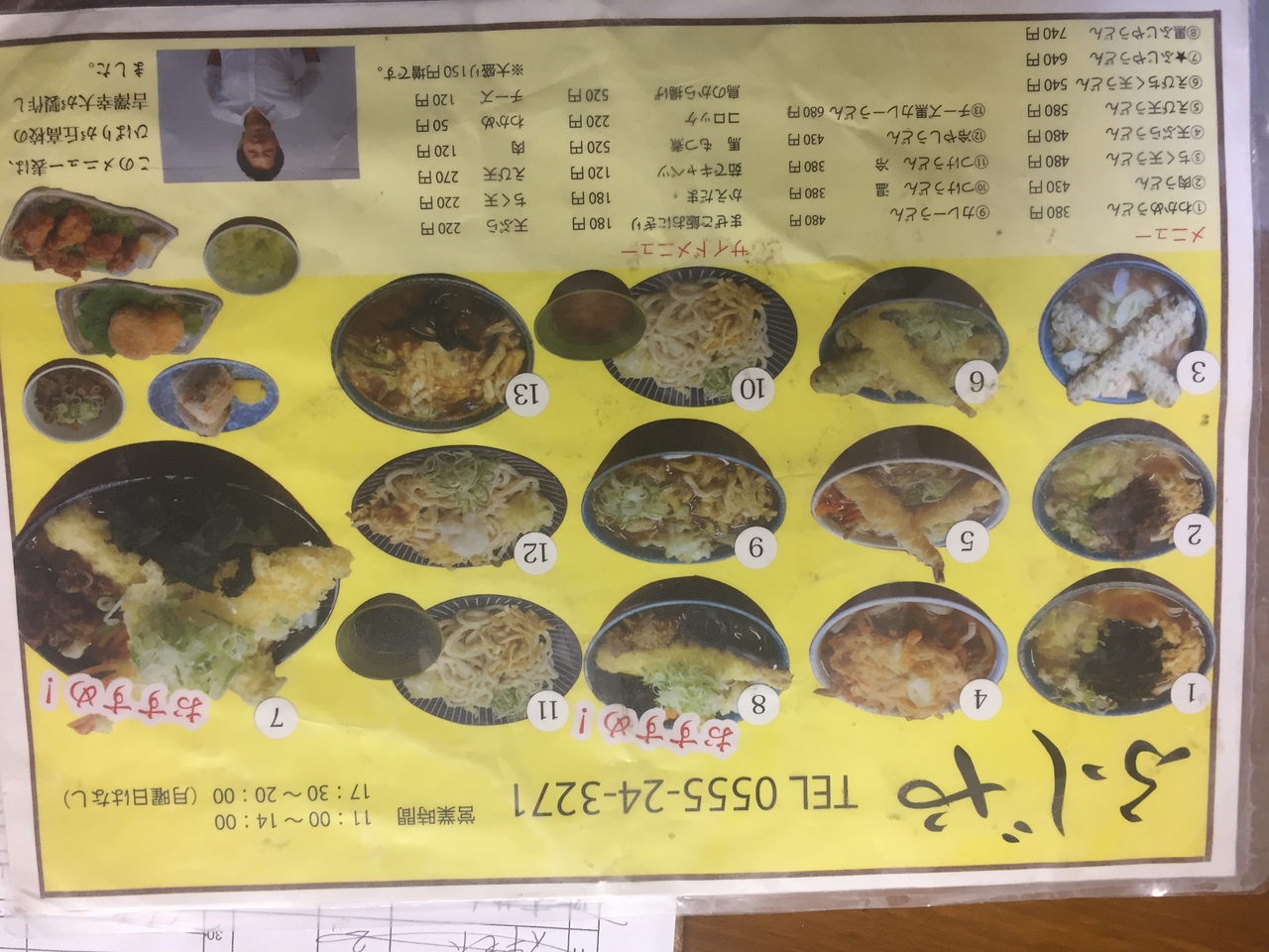 山梨県では有名な『吉田うどん』といううどんの店です。日曜日の昼に行きましたが、30分位待ちました。ネットでは、コシの強いうどんとのことでしたが、コシの強いというのは讃岐うどんのコシとは全く別物で、モチモチ感はありません。ブチブチちぎれるとという感じです。汁は醤油と味噌の合わせとのことですが、出汁の味は殆どないです。讃岐に慣れている人にはイマイチなうどんだと思います。