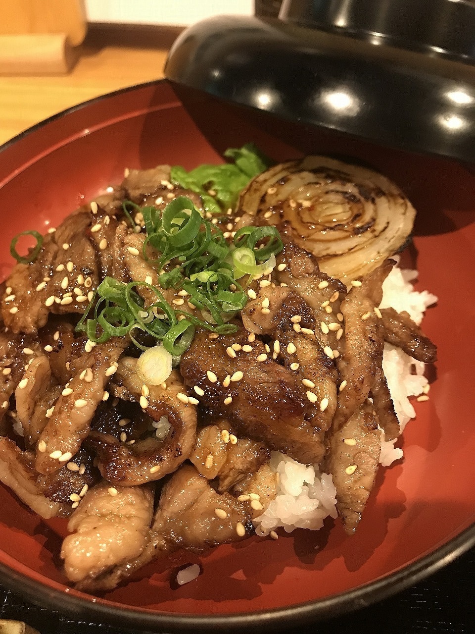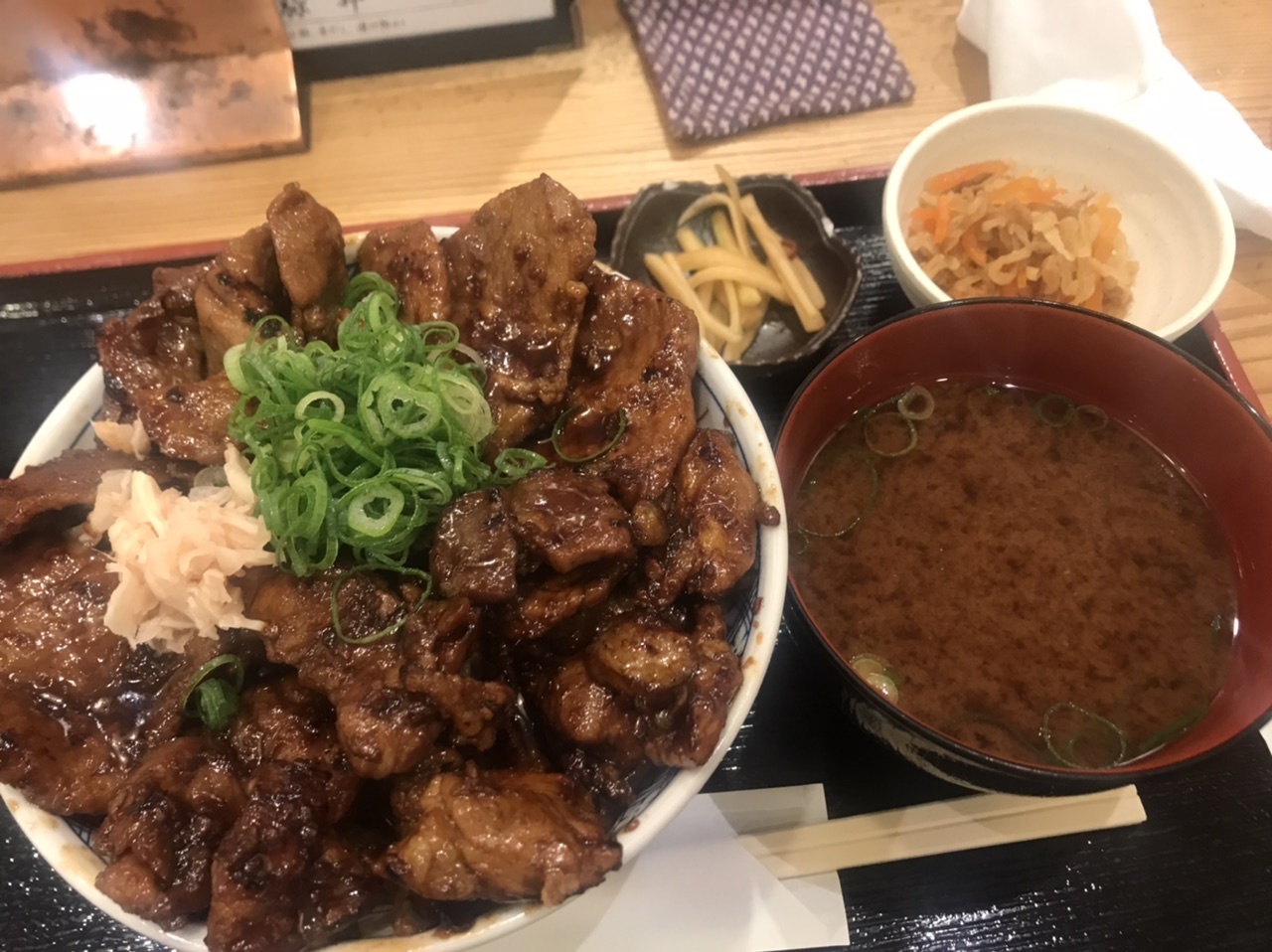 京阪天満橋駅のパナンテ京阪天満橋の1階にある店です。昼のランチで利用。入口にインパクトのある豚丼の写真があったので、その豚丼を注文。写真に違わぬボリュームの豚丼です。甘辛のタレは程よくて美味しいです。豚肉はかなり食べ応えがあります。大盛り無料です。