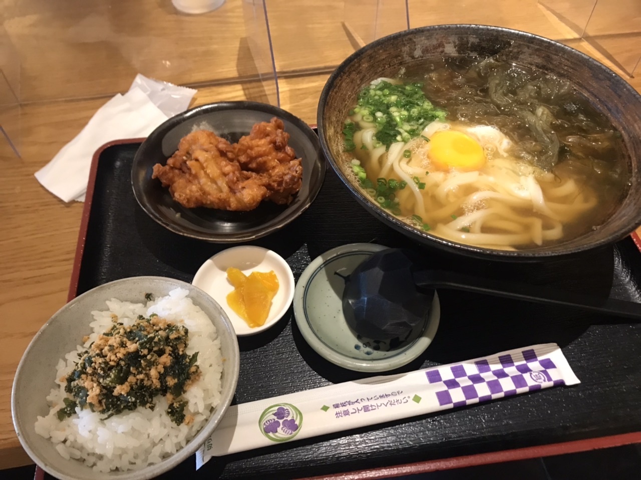 東大阪市内の国道170号線沿いにあるうどん屋さんです。ここは、ランチが900円で、月見こんぶ、梅わかめ、おろしぶっかけ、釜玉うどんの4種類からうどんを選び、唐揚げなどのおかずと各種ごはんから好きなのを選んで組み合わせられます。