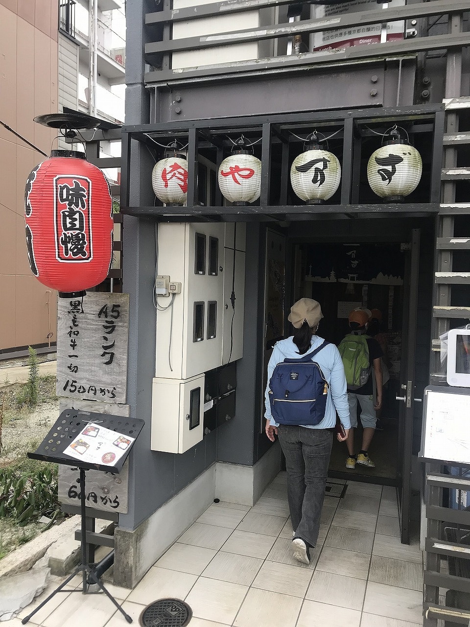 日曜日の夜に利用。19:00の段階で早くも行列。赤身と脂身の牛リブロースカツ膳1290円、赤身のロースカツ膳を注文。最初から付いているわさび醤油、山椒塩、牛カツソース、京カレー汁に、追加の京玉(温玉)、みぞれポン酢で食べます。しかも、牛カツを鉄板で焼いてからお好みの薬味、つけだれで食べます。肉は柔らかくて美味しい!行列ができるのも納得です。テーブル4席、カウンター6席、駐車場はありません。
