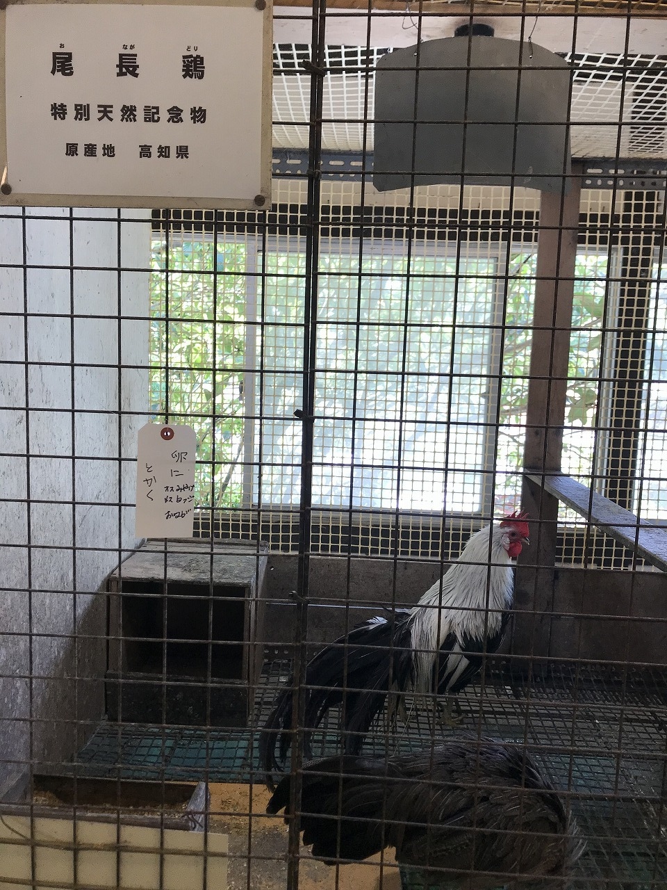 高知県香美市の鍾乳洞『龍河洞』にある珍鳥センターです。高知県はいろいろな鶏で有名です。このセンターは無料で、建物に入ると真っ先に「土佐ジロー」が鳴くのでびっくり!センターは大したつくりではないですが、建物内に土佐ジローをはじめとして、軍鶏など10種類位の鶏が飼われています。天然記念物の尾長鶏もおり、初めて実物を見れました。