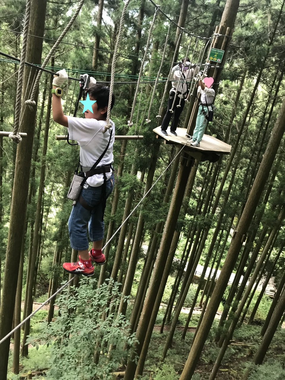徳島県の祖谷渓谷近くにあるアクティビティーです。森の中でアスレチックは高さ10メートルのところを渡ったりします。子供も大喜びでした。最後は森から川の上を通って360メートルを下るジップラインが最高!綺麗な川を上から眺めて空を飛んでいる気分です。しかも、戻りにもう一度ジップラインができて本当に楽しいです。説明も丁寧で良かったです。4年生以上からのアクティビティで、大人4100円、子供3800円ですが、その値打ちありです。