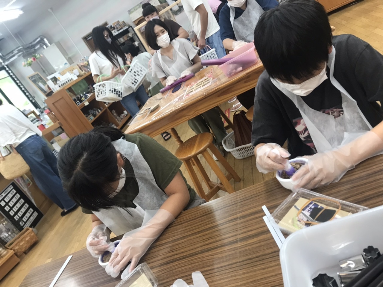 お香、ハーバリウム、香水、ジェルキャンドル、ハーブ石けんなどが作れます。お香の手作り体験800円をやりました。ラベンダー、カモミール、ローズマリー、ローズから香りを選びます。結構な数できます。後でみんなで自分の作ったお香を炊いて楽しめるのでいいです。