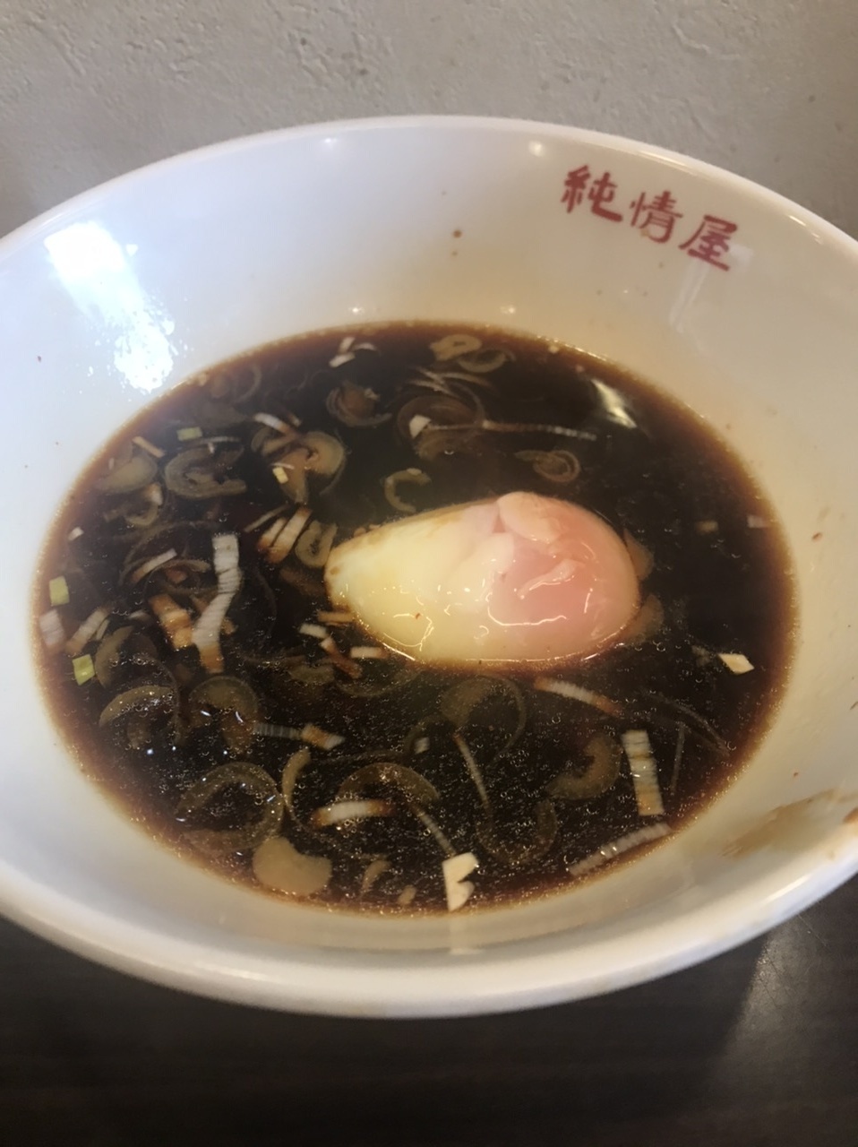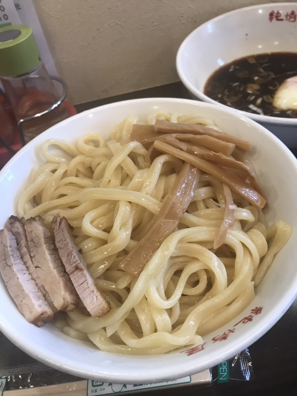 つけ麺は醤油、塩、のり、黒ゴマ坦々つけ麺などがあります。つけ麺の醤油830円を大盛り170円増しで注文。熱盛りはできません。昼は半チャーハンが60円です。自称大阪一の極太麺です。スープは濃い色と同じで濃い醤油味。温玉が入ってます。出汁の味やコクがない感じです。最後に生姜のスープ割りができますが、割っても出汁の味は感じられませんでした。昔からこの味でやってきてる店で、最近よくあるつけ麺とは全く異なるつけ麺で、それそはそれで良かったです。地元の人がたくさん来てました。駐車場なし。