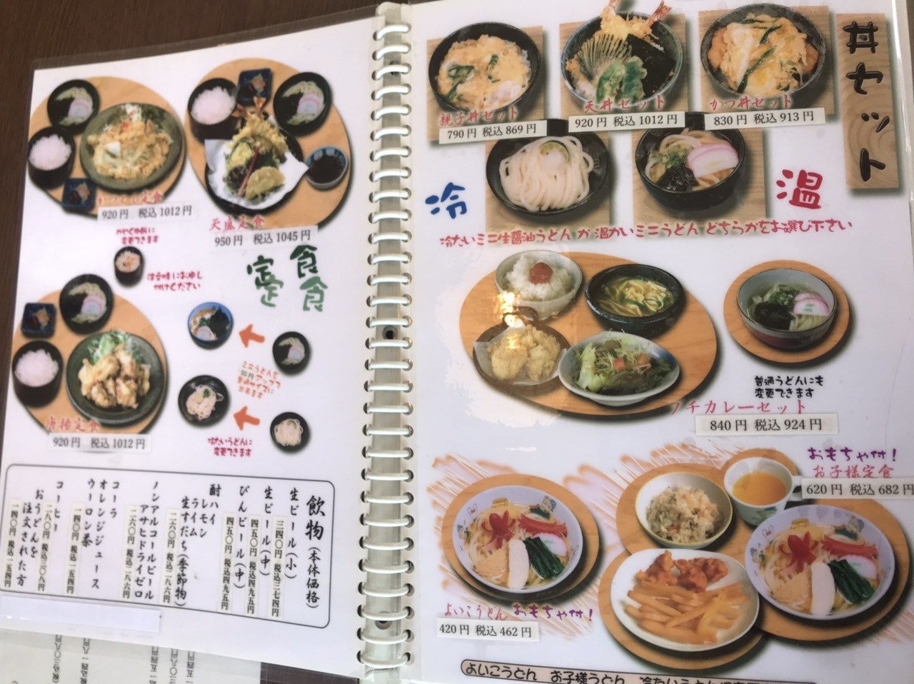 各種うどんに丼やカレーなどの各種定食があります。びっくりうどん980円を注文。うどんニ玉、きつねあげ、生玉子、わかめ入りです。お好み焼きもあり、テーブルには鉄板がありました。うどんは出汁は美味しいですが、特筆するほどではありませんでした。店は広いです。