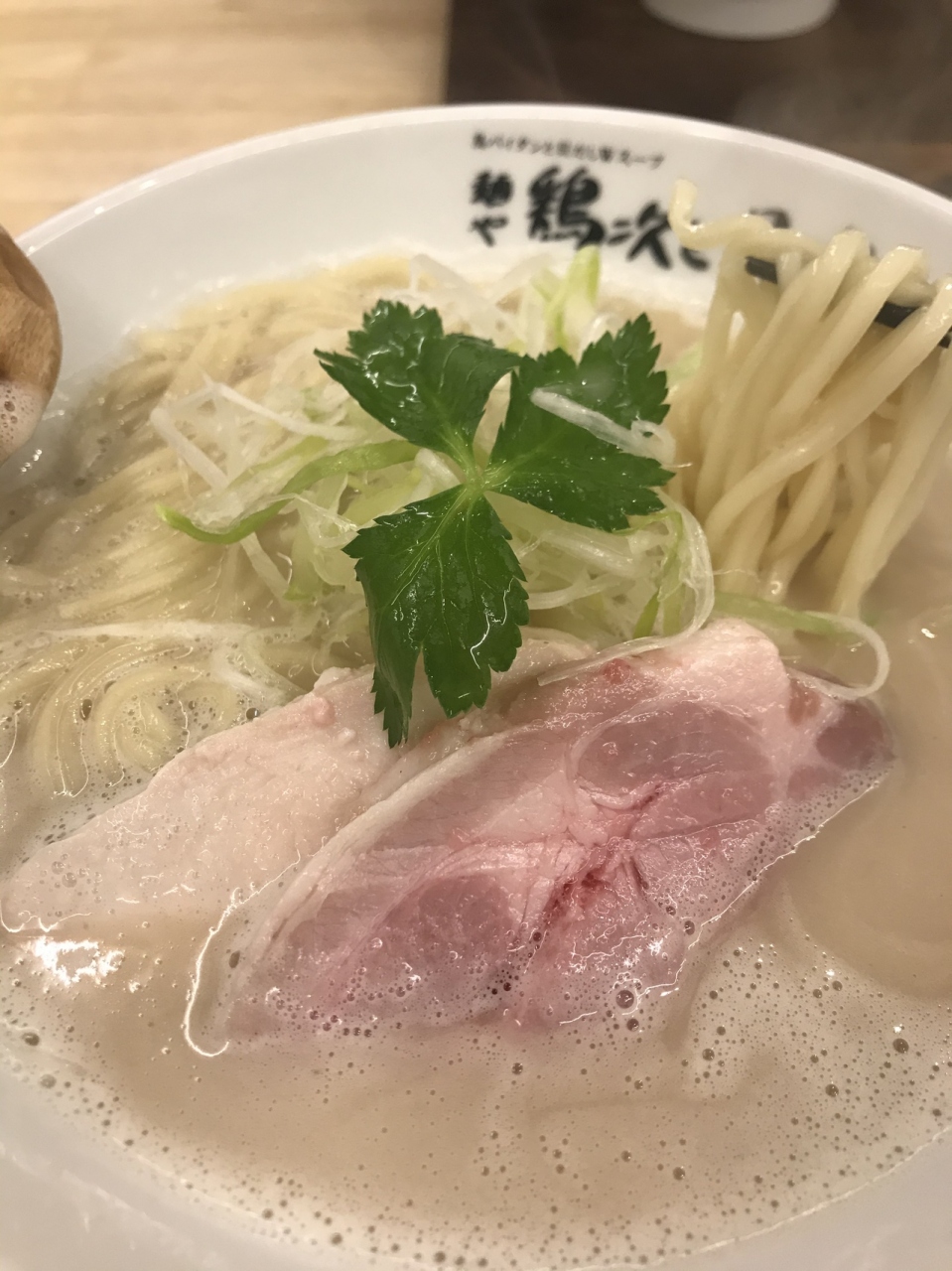 店は綺麗でお洒落。鶏パイタンとはまぐりから取った貝出汁のダブルスープ。鶏貝そば800円の大盛りで120円増し。他に辛い貝次レッド、背脂たっぷりのホワイト。豚と鶏肉のレアチャーシューが載っています。豚のチャーシューは分厚くて美味しい!スープもしっかり貝の出汁が効いています。駐車場は無いですが、近くにコインパーキングあり。