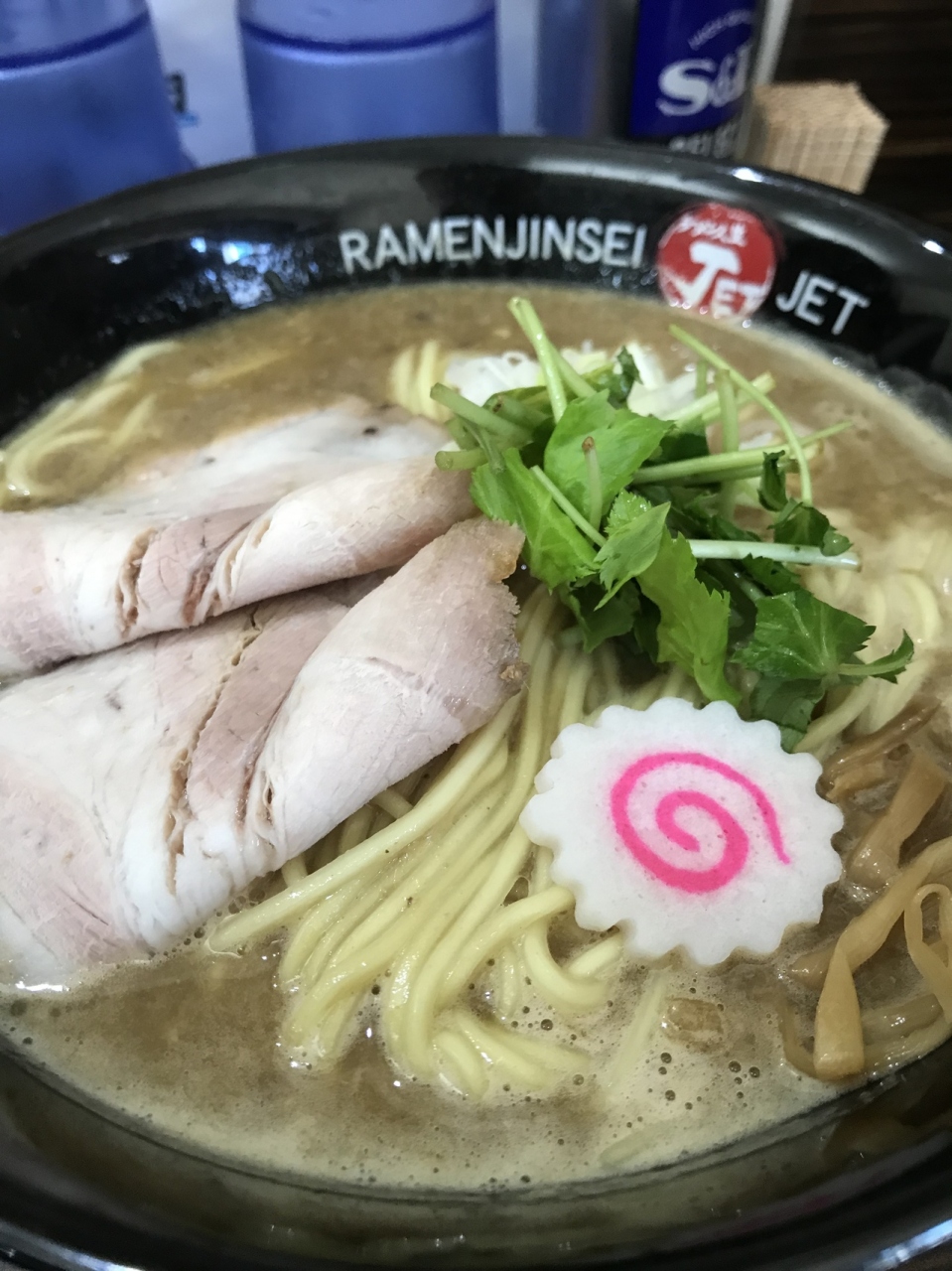 ラーメン750円、ニンニク入りで注文。豚骨、鶏ガラ豚バラの出汁。大盛りは300円アップとちょっと高めです。断然ニンニクを入れるべき!個人的にはニンニク少量がちょうどいいです。つけ麺もあり。駐車場なし。