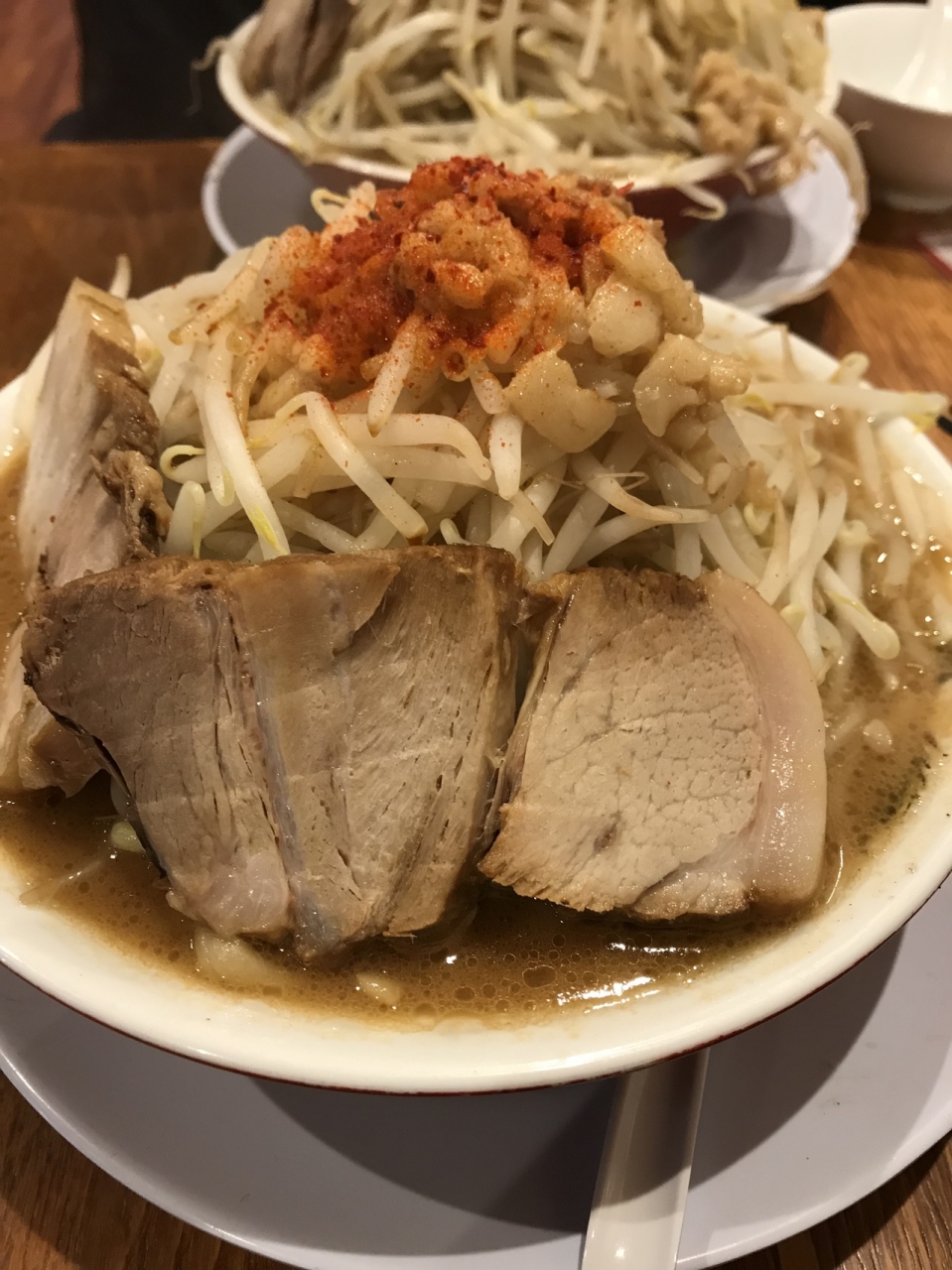 貝塚市と岸和田市の境あたりにあります。二郎系ラーメンのチェーン店です。二郎系といえば醤油豚骨が普通ですが、ここの店は味噌も選択できます。塾長ラーメン味噌大盛り950円で、もやしや背脂等の選択ができます。残ったスープに入れるかゆ飯無料券ももらえます。味噌は濃厚で麺も太くて美味しいです。かゆ飯もペロリと食べれてしまいました。