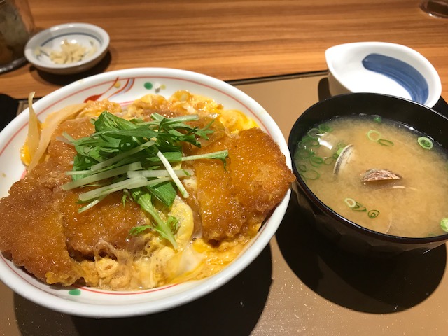 谷町3丁目交差点を西に行ったところにあります。ここでかつ丼と貝汁を注文しました。かつ丼はごくごく普通ですが、普通においしいです。買い汁も美味しかったです。店内は非常にきれいで、気持ちよくたべることができました。