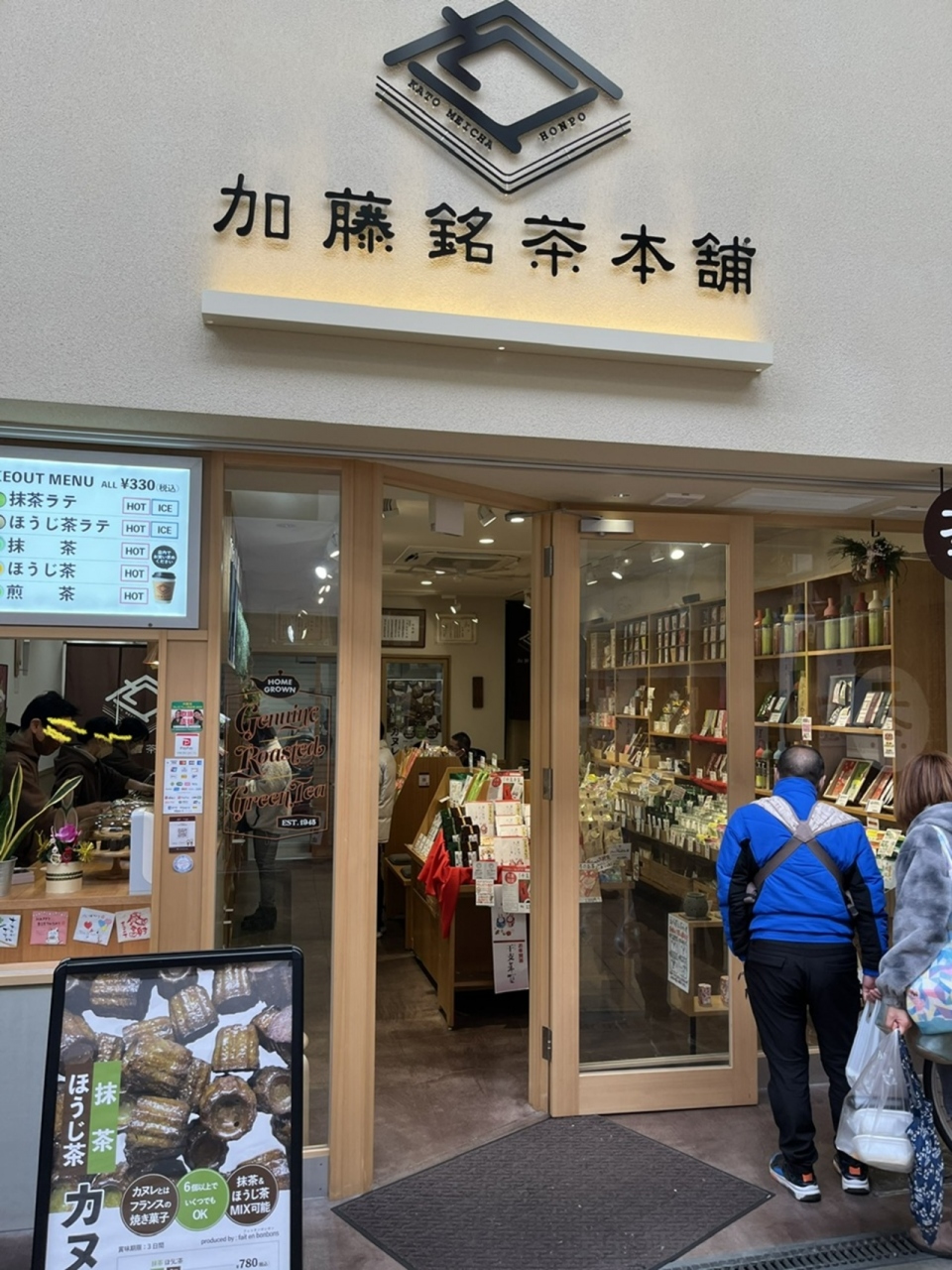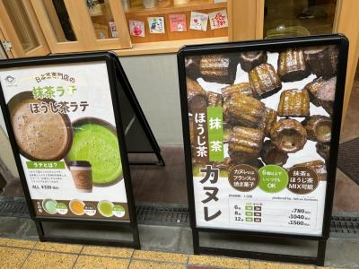 旭区の千林商店街内にあるお茶屋さんです。店先の看板にお茶のカヌレを見つけたので購入。