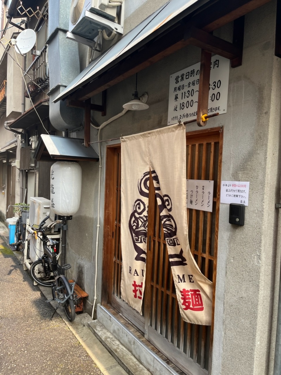 JR桜宮駅近くにある人気の鶏そば系ラーメンの店です。細い路地を入ったところにあるため、わかりにくいです。