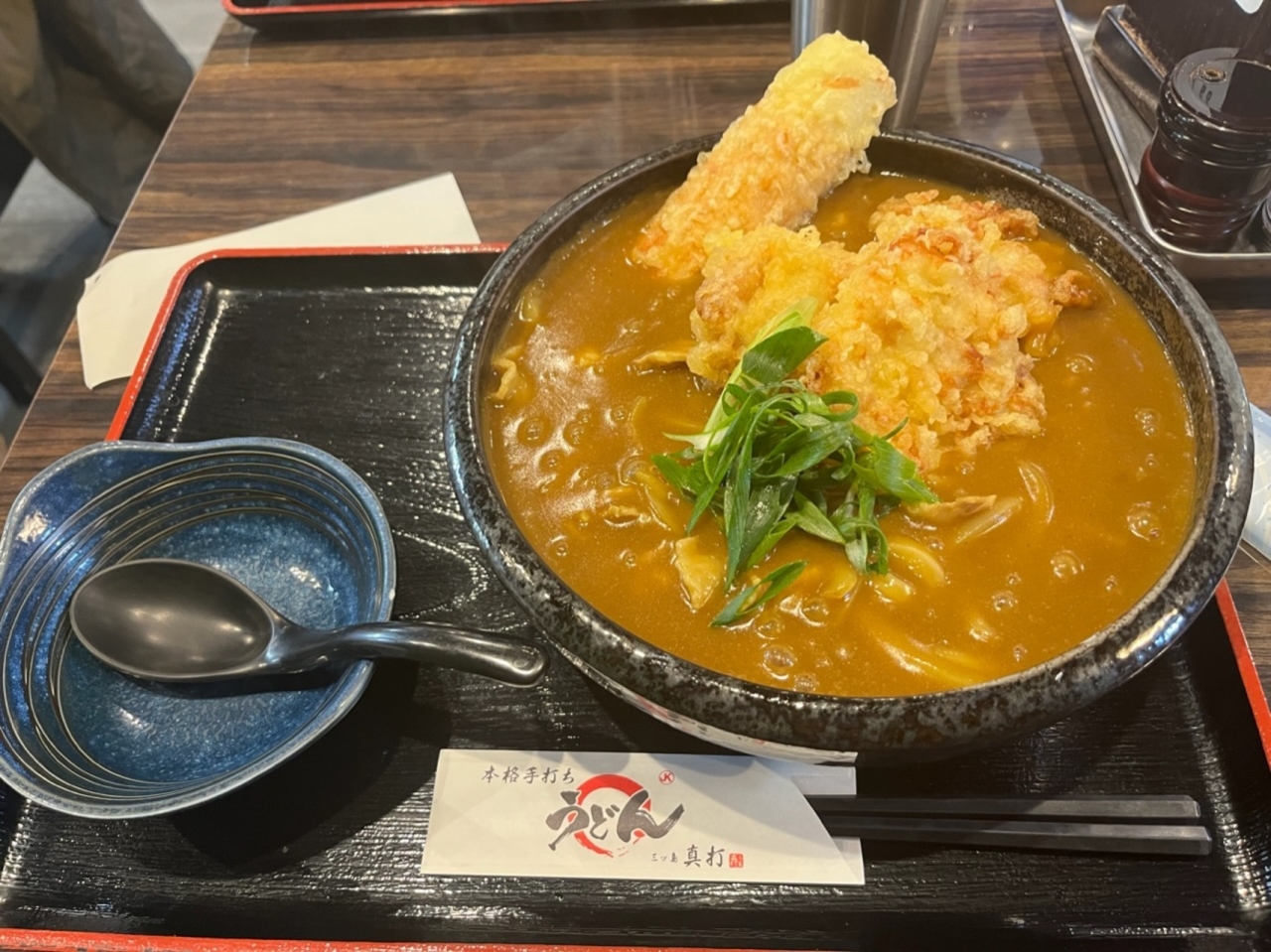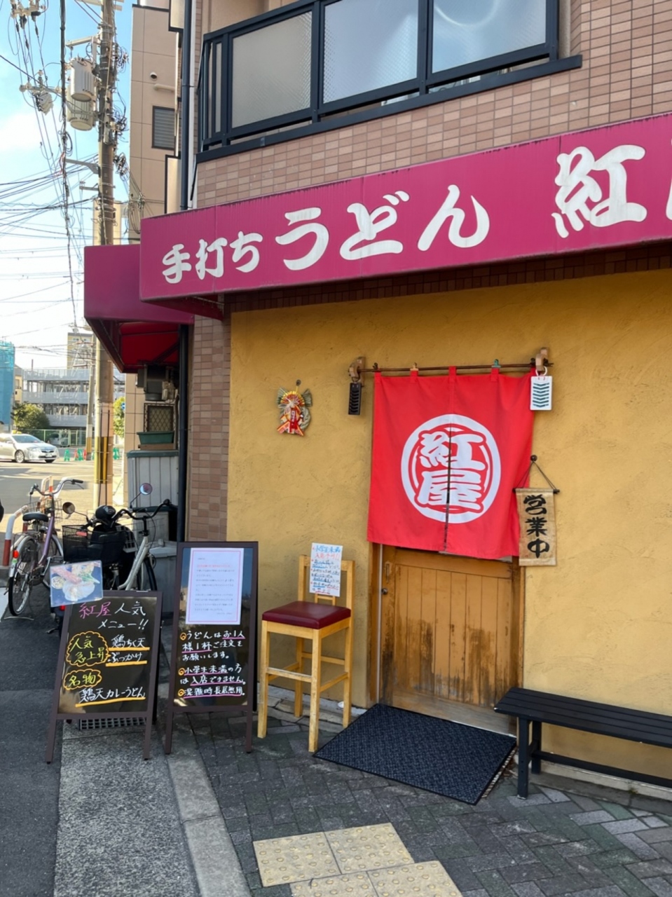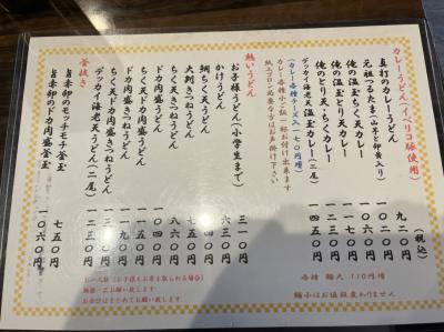 テレビや雑誌で有名な、門真市にあるうどん店です。11:00開店で、10:30には誰も並んでなかったので安心していたら、11:45には6組位並んでおり、危うく一巡目に入れないところでした。並んでいる間に注文を聴いてくれるので、入店して程なくうどんが出されるのはありがたいです。また、準備ができてら開店数分前でも開けてくれるのがいいです。本当はぶっかけを食べたかったけど、寒かったのとカレーうどんが有名とのことで、『俺のとり天・ちくカレー』1230円を麺大盛り110円増しで注文。小ご飯が一杯無料で付きます。大食漢の私が多いと思うほど、大盛りはかなり多いです。まず、驚いたのは、大抵のカレーうどんは麺が柔らかいですが、ここのカレーうどんは、麺のコシが凄い!これは初めてです。カレーは少し辛めで美味しい!とり天も3つ入っており、美味しい!人気なのが十分理解できました。並ぶ価値の店です。店内は二人掛けテーブル8組のみです。駐車場はありません。