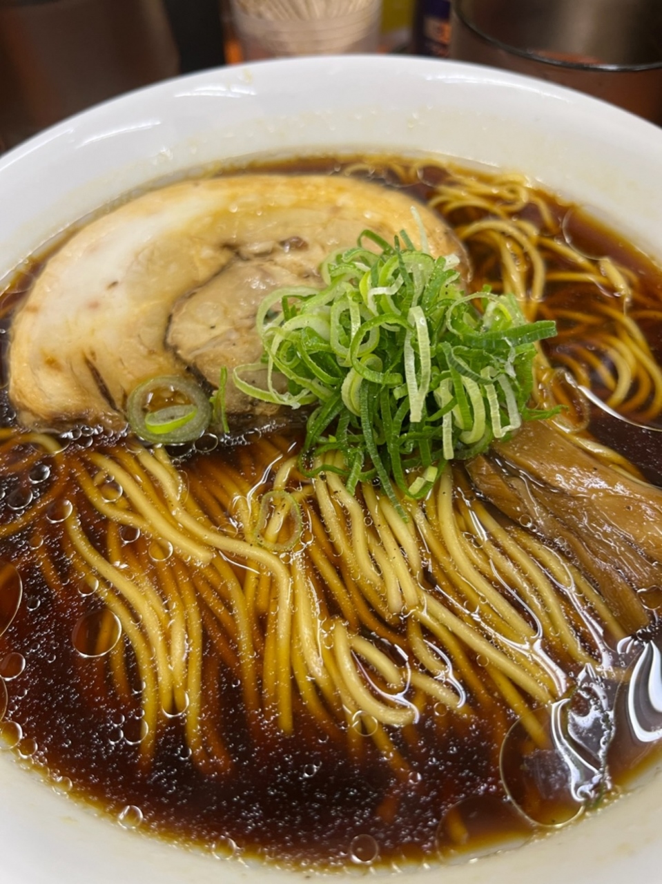 麺は細麺で、スープは可もなく不可もない、よくある感じのしょうゆ豚骨スープです。チャーシューは本当に柔らかく、美味しいです。