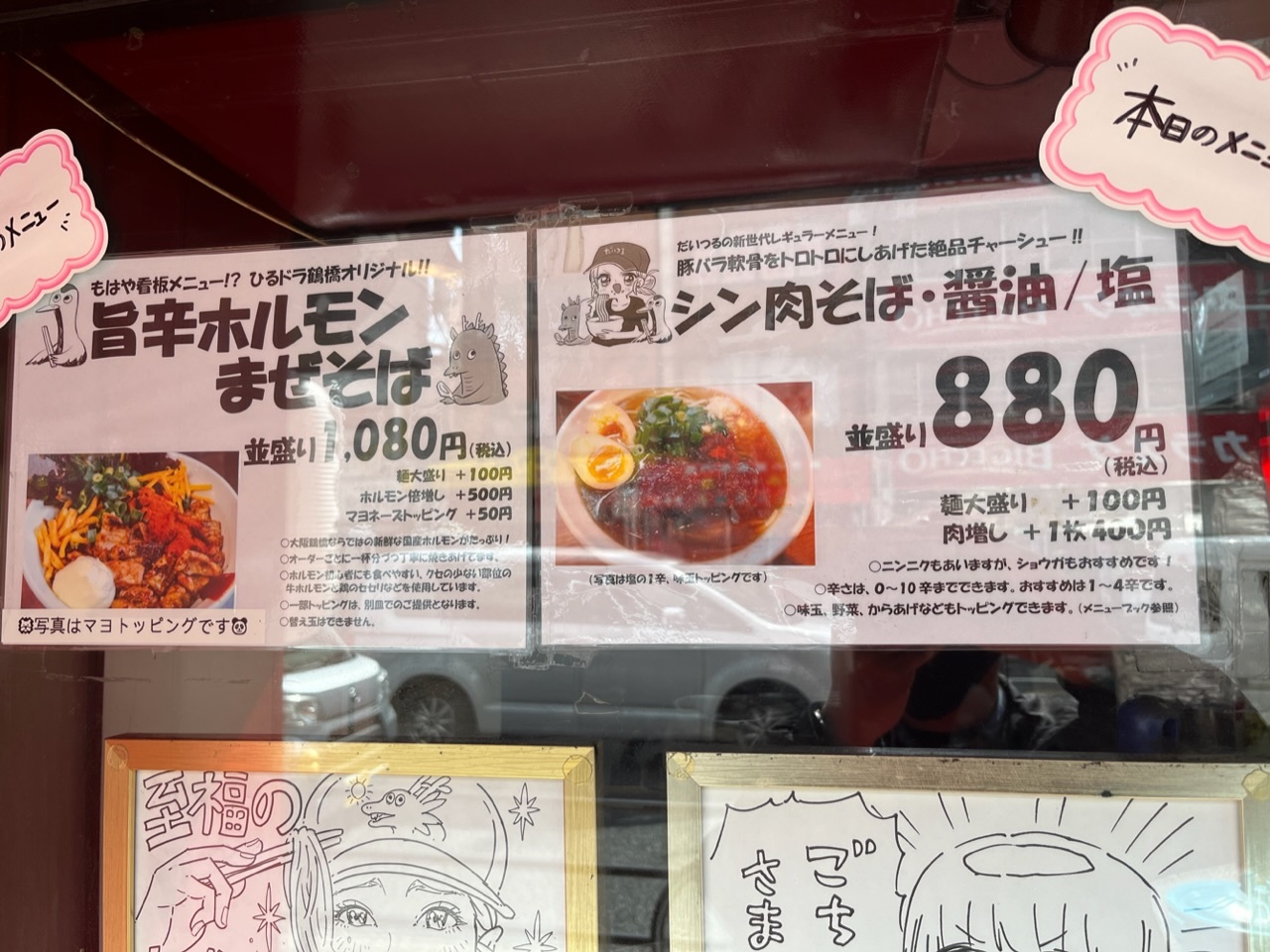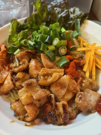 大阪の鶴橋にあるラーメン店です。ここは、ホルモンまぜそばと肉そばがありますが、ホルモンまぜそばが1080円が有名です。ホルモンは香ばしく焼かれており、めちゃくちゃ美味しい!ホルモンだけでも注文したくなる美味しさです。辛さを選べますが、あまり辛くしない方がいいです。麺ももっちりしていて美味しいです。混ぜそばはそれほど好きではなかったですが、このホルモンまぜそばは必食です。