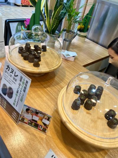 抹茶とほうじ茶の二種類のカヌレがあり、6個780円から購入できます。どちらの種類もお茶の香りがしっかりしており、カヌレの独特な食感と相まっておいしです。お土産に喜ばれそうなカヌレです。- 旅行時期
