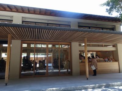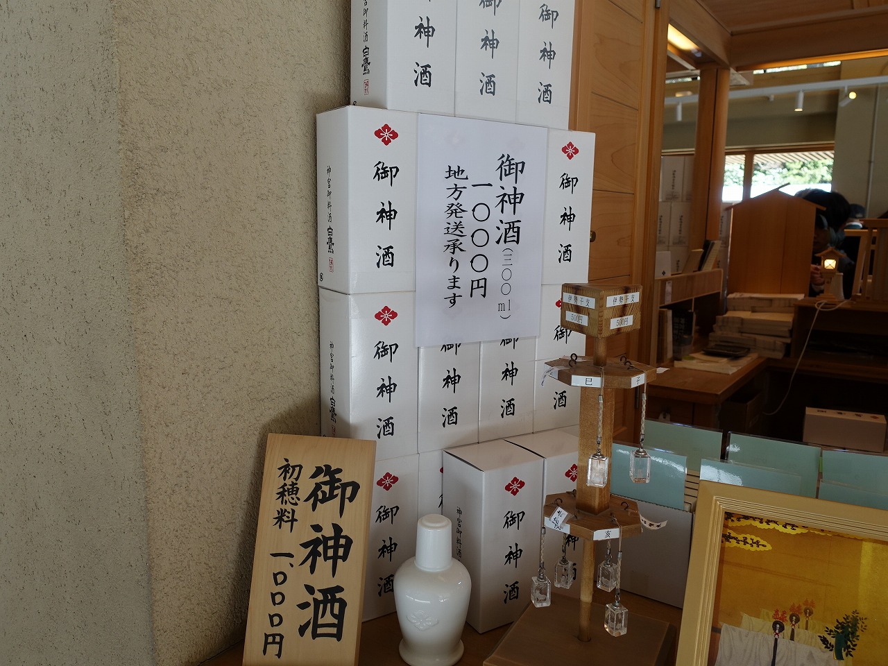 伊勢神宮(内宮)内にある場所です。参拝者用の「無料休憩所」で、全面ガラス張りで清潔感がある明るい建物です。ここで御神酒を売っていたので思わず購入してしまいました。白いお神酒用の陶器に入っており、千円です。中身は地元の白鷹です。