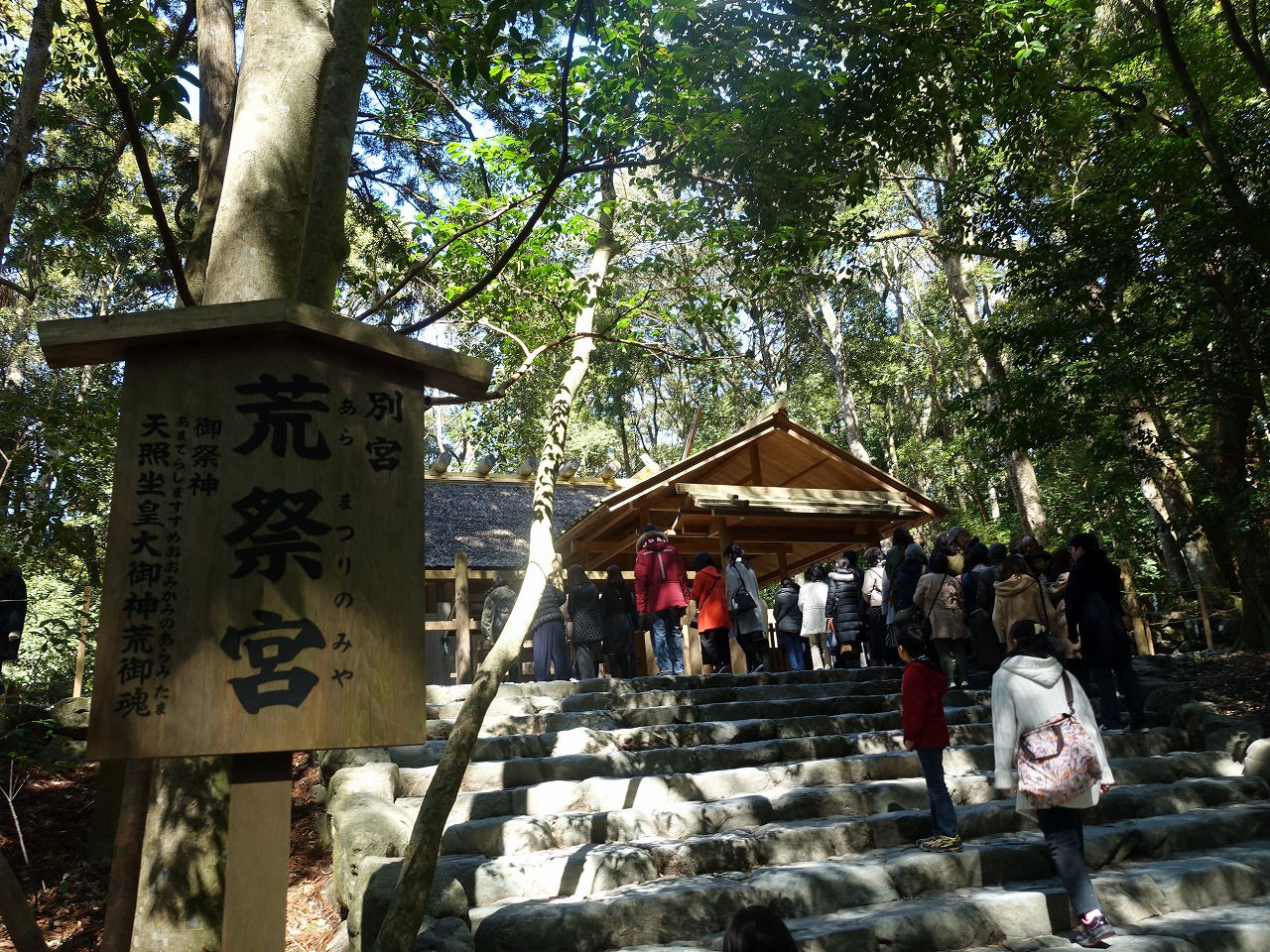 伊勢神宮の内宮にある別宮です。別宮はそれぞれ序列があるそうで、この荒祭宮は序列第一位だそうです。正宮を参った後、人の流れに沿って歩いていくと簡単にいけます。ここは参拝する人が多いので、行列ができていますが、それほど待たずとも行けます。個人的なお願いはここでするそうです。