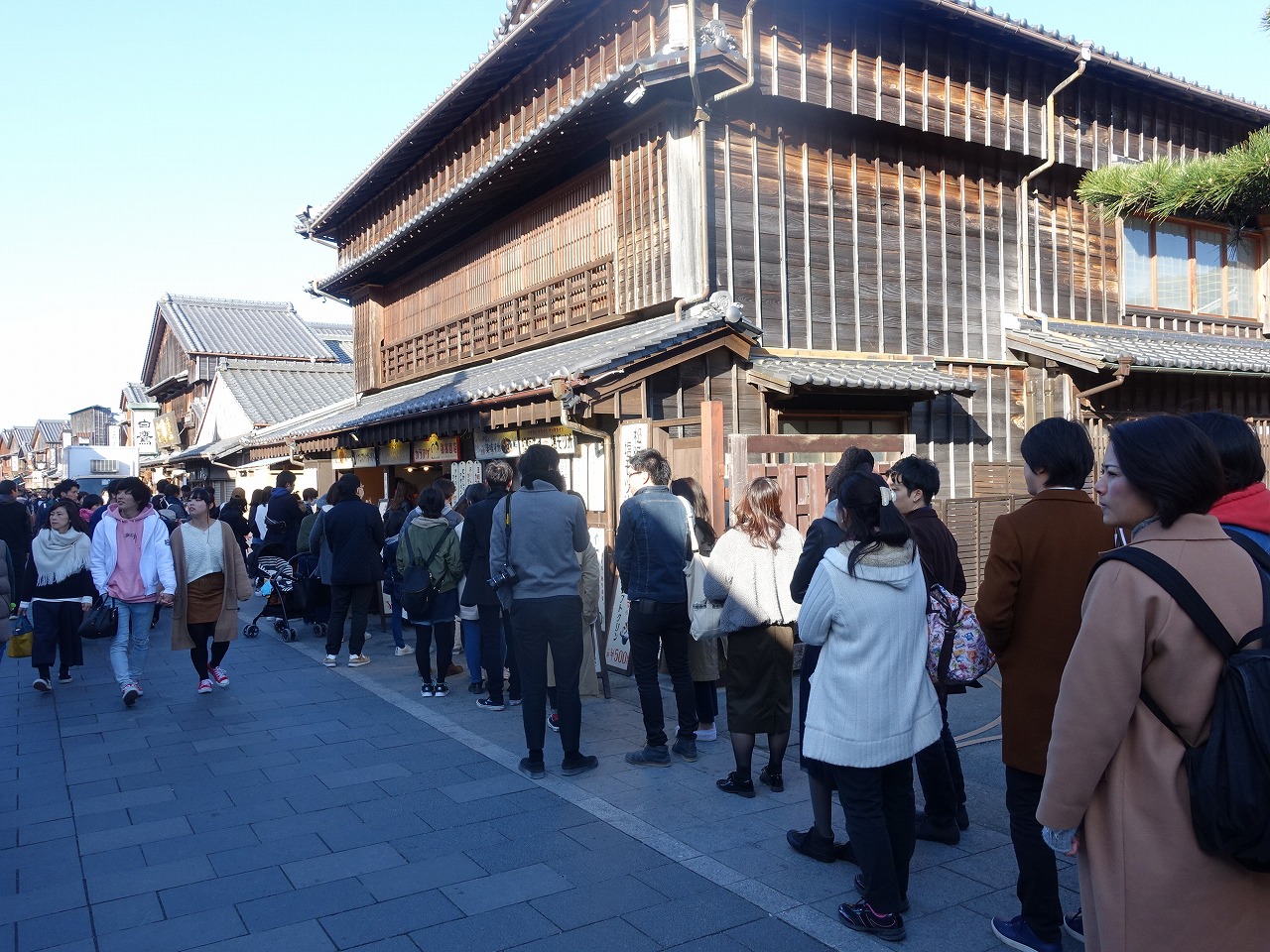 伊勢神宮のおはらい町にある赤福の本店です。ここは街並みにマッチした趣ある店構えで、いつも行列ができています。赤福と抹茶は最高。夏には赤福が載った抹茶のかき氷『赤福氷』が人気です。冬はぜんざいがおいしいです。初めての人はぜひ雰囲気だけでも味わってください。