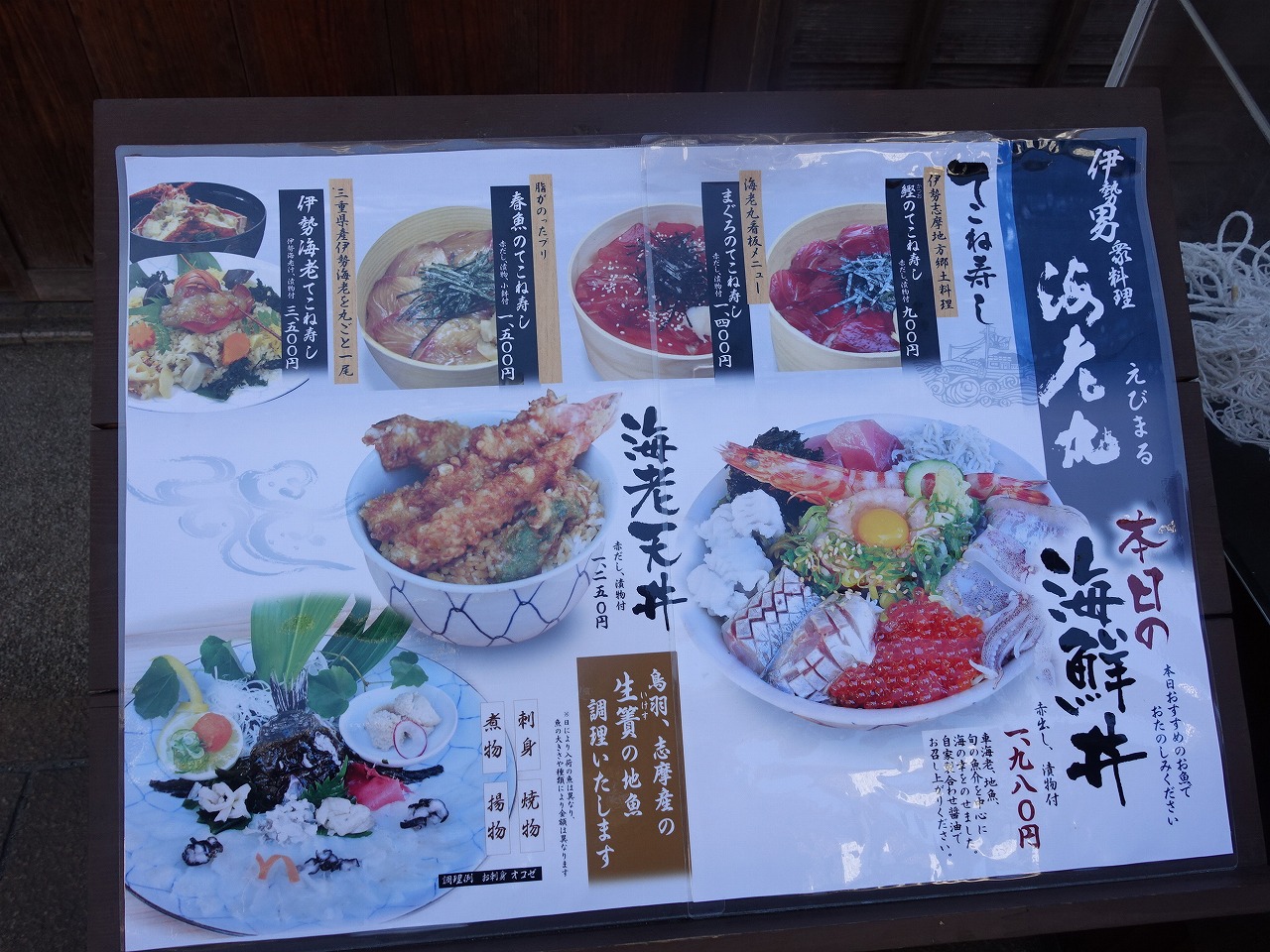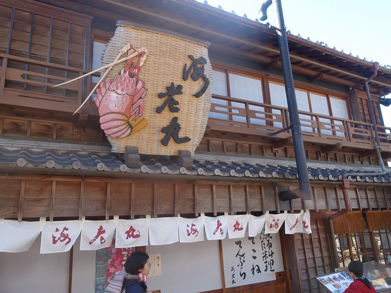伊勢神宮のおはらい町内にある海鮮ものの食べられる店です。昼はとても混んでいます。海鮮丼ぶりはいろいろなシュルの刺身が載っており安定のうまさです。エビフライは大きめのエビで、これも食べ応えあり。白身魚の海鮮丼などもお手頃価格です。店の雰囲気もいいのでお勧めです。