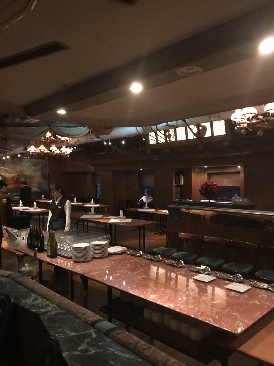 赤坂のホテルニューオータニの中にあるレストランです。店内は帆船をイメージした落ち着いた、お洒落な模様になっています。会合で利用しましたが、ローストビーフやチャーハン等ありましたが、一人7000円の予算にしては種類や量が少なすぎでした。店の雰囲気は好きですが、次はないかな。