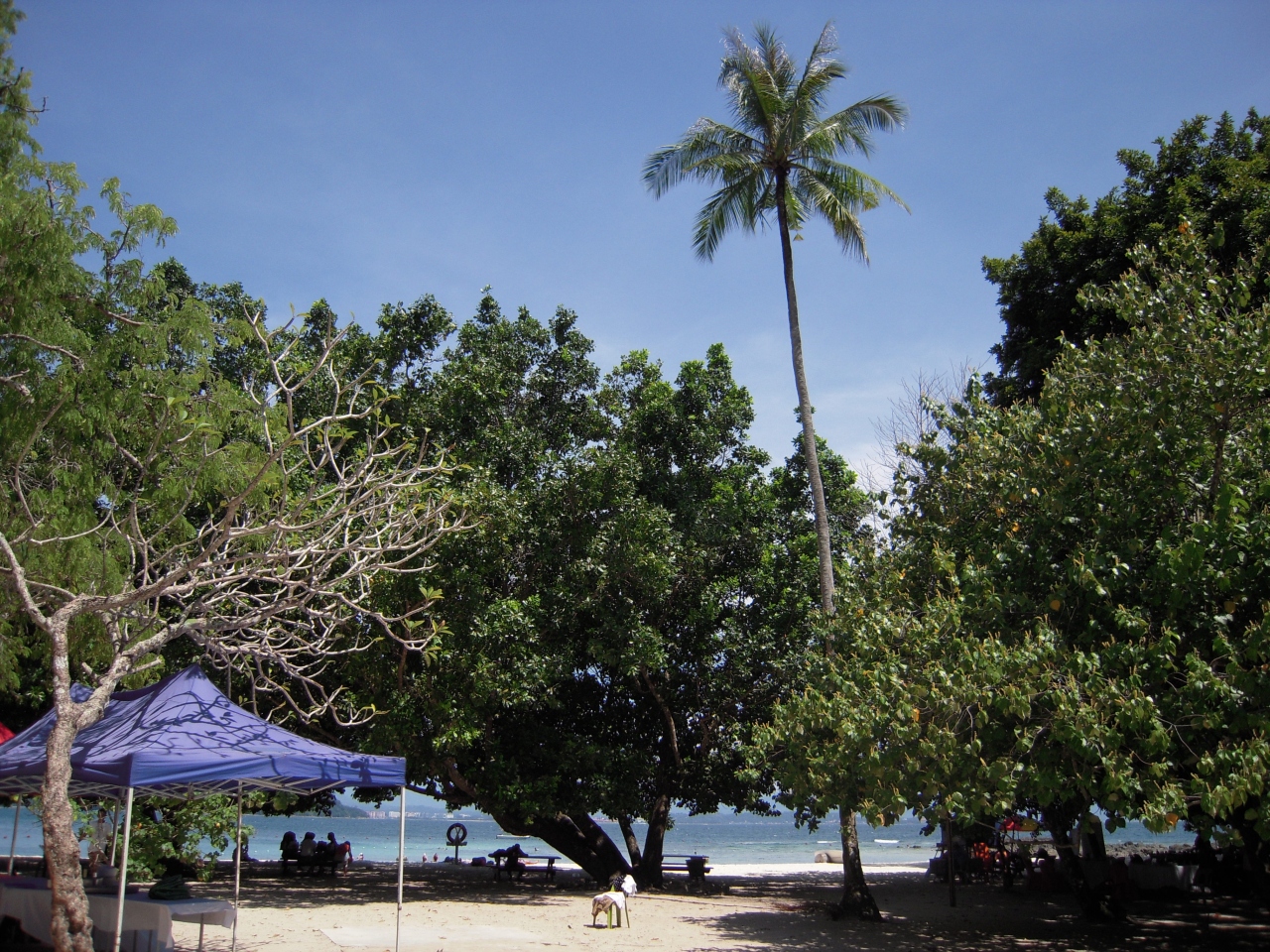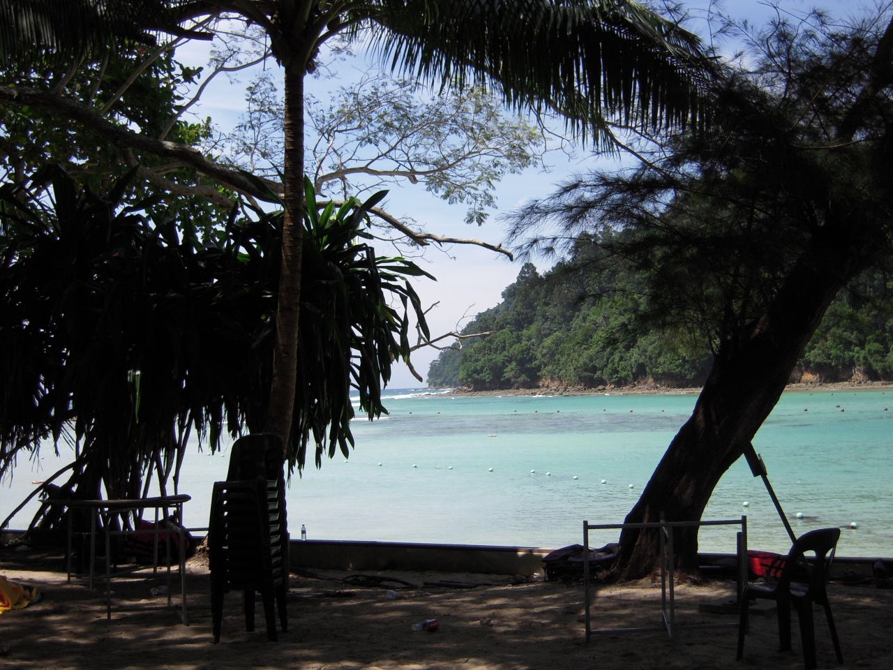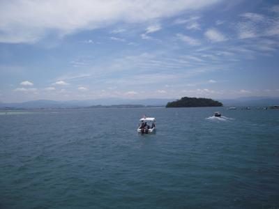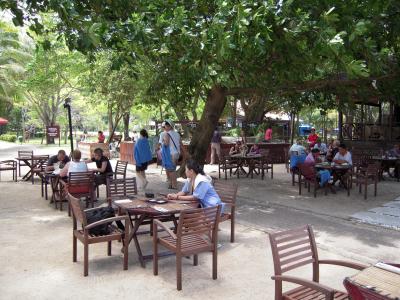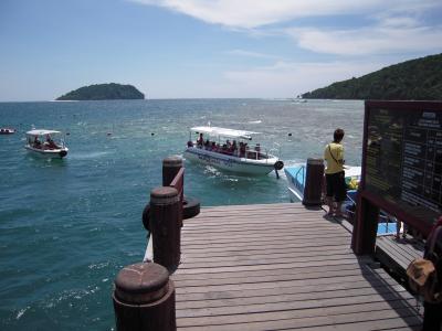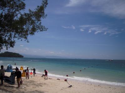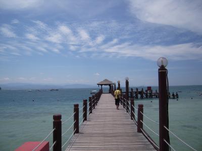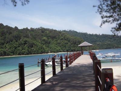 ボルネオ島自体の海はきれいではないので、きれいな海に行きたければ、ほかの島にアイランドホッピングで行きます。シャングリラ・タンジュンアルから船が出ており、サピ島に向かいました。それほど大きな島ではなく、ビーチも限られていますが、海はきれいで魚もたくさんいます。島には小さな店があり、アイスクリームやドリンクが買えます。この島にはオオトカゲがおり、山から何匹も降りてきて、すぐ近くで見ることができます(危険ですので自己責任)。