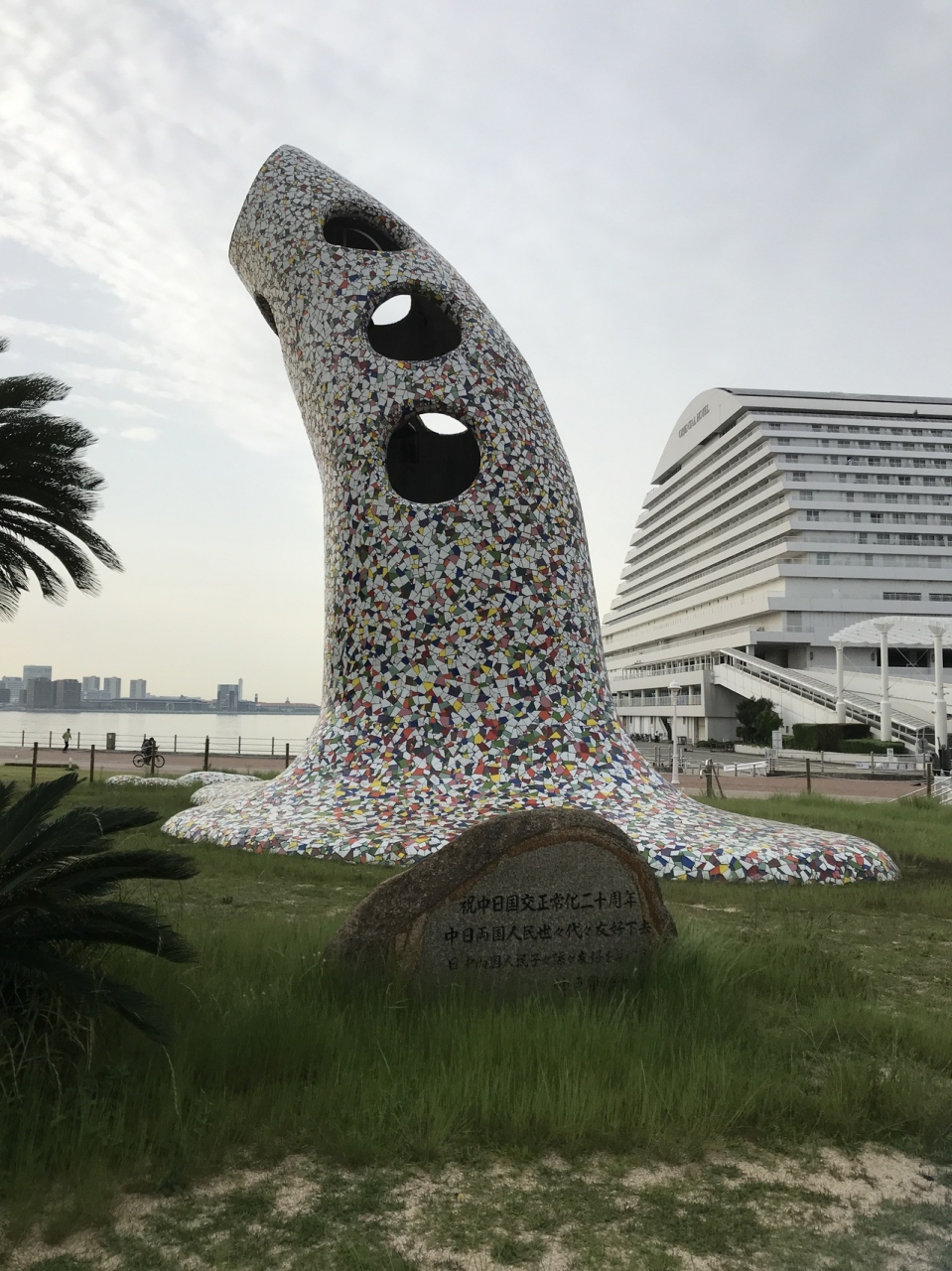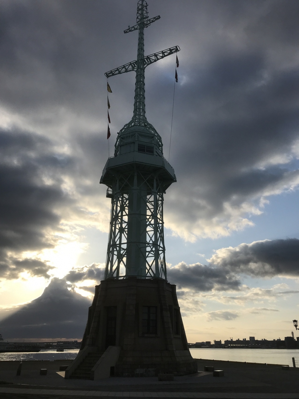 神戸のハーバーランドにあるはねっこ橋の近くに立っているモニュメントです。大正8年に川崎造船所の当時の社長が初めて8時間労働を採用したことから建てられた碑だそうです。付近に何の説明もないので何のことか元はわかりませんでした。