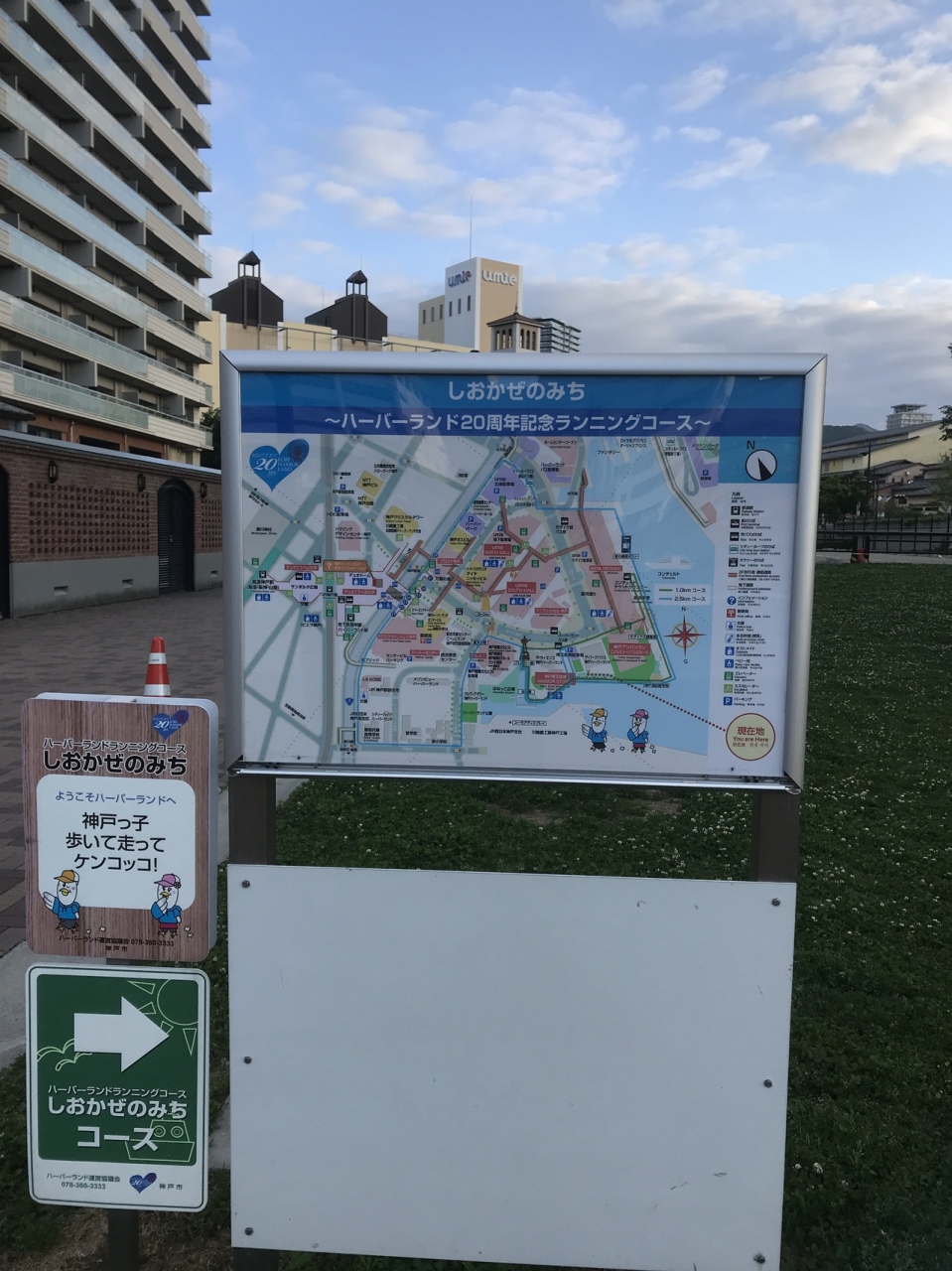 神戸市立摩耶兵庫高校付近からハーバーランドまで通じるジョギングコースです。おしゃれなハーバーランドの海沿いを気持ちよくジョギングできます。朝早く行くと人もほとんどいないので朝日できれいなハーバーランドを走ることができます。